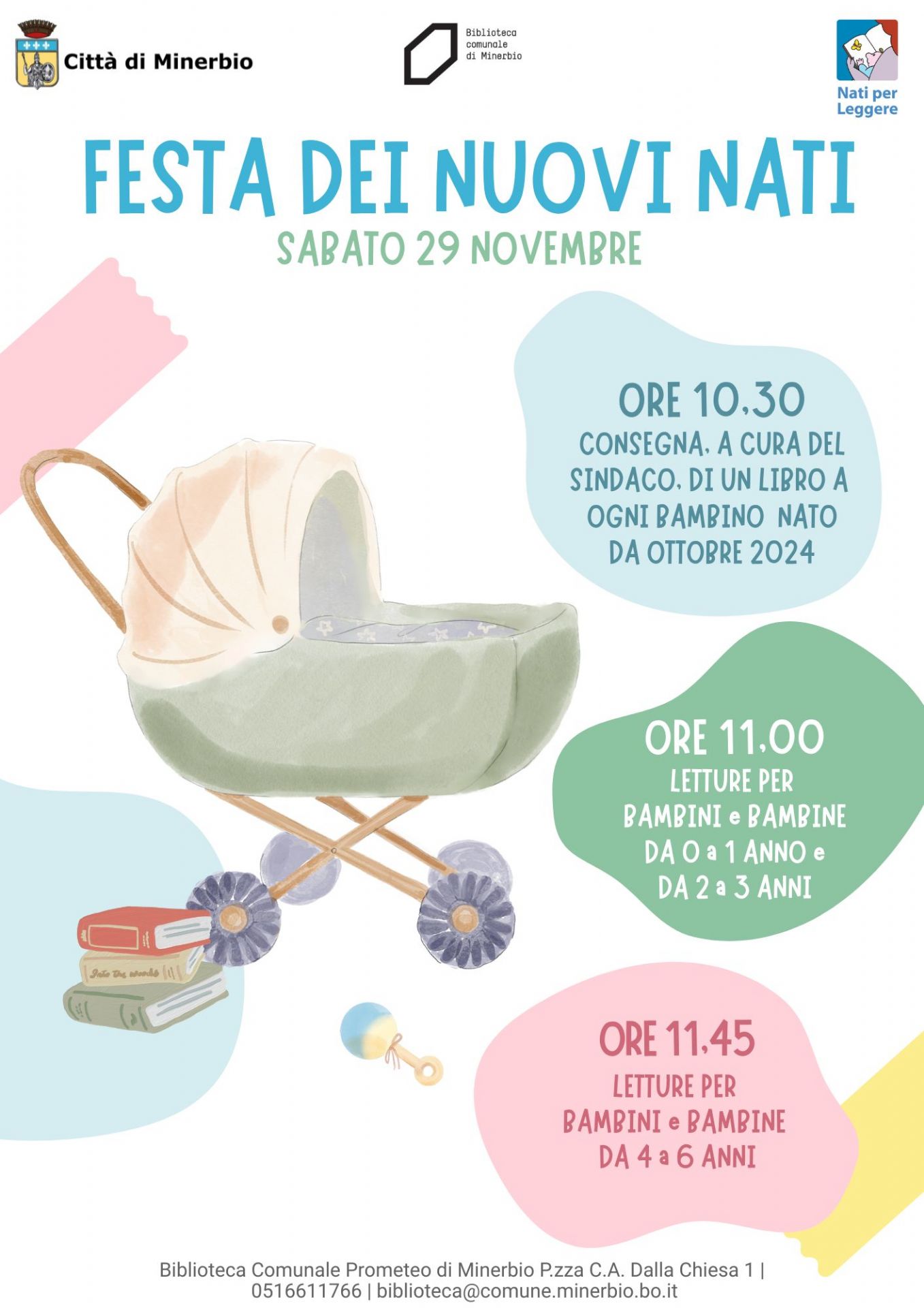 Sabato 29 novembre 2025 presso la Biblioteca Comunale di Minerbio, in occasione della Settimana nazionale Nati per leggere, si terrà la Festa dei Nuovi Nati.