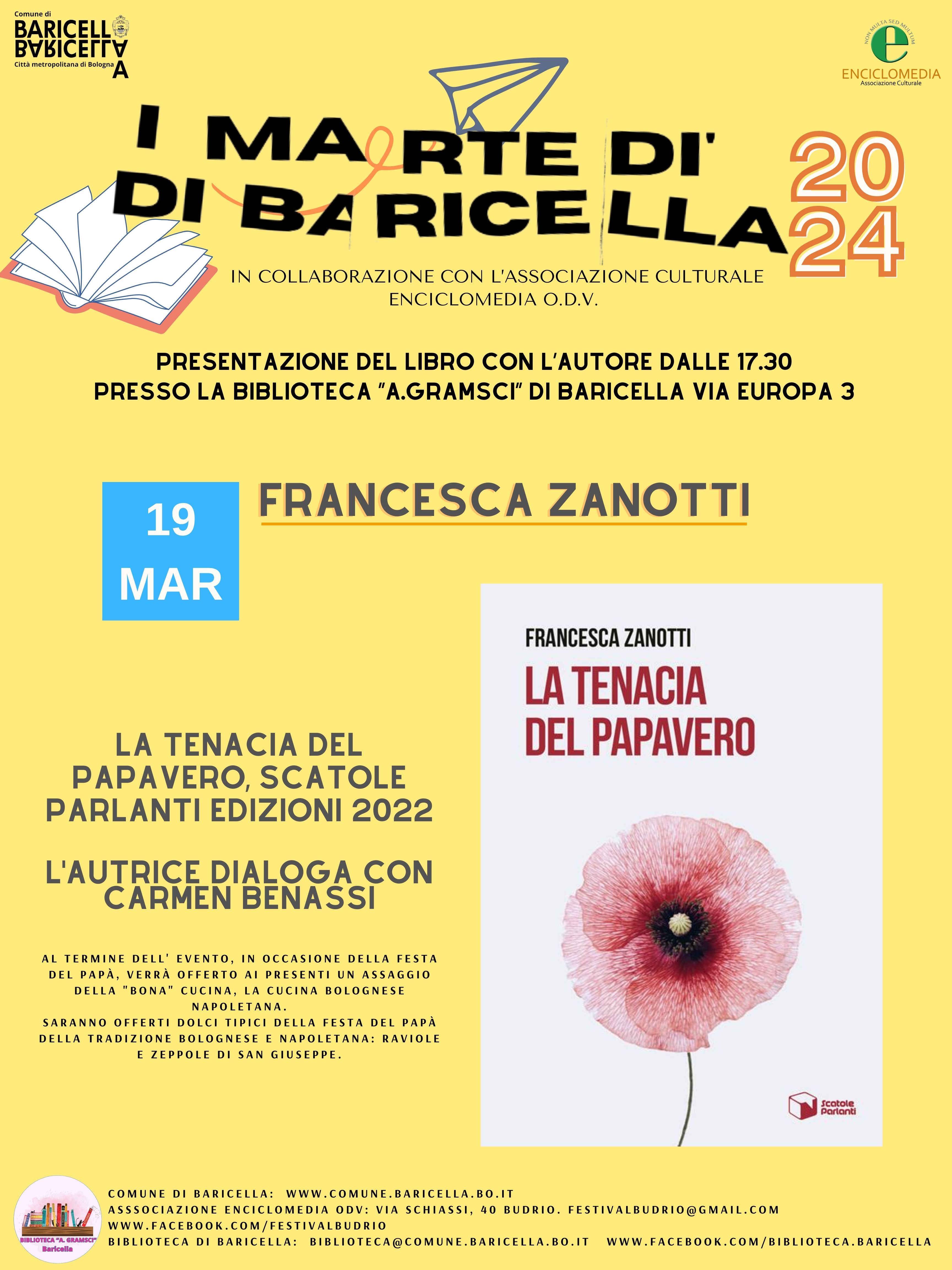 - Martedì 19 Marzo Francesca Zanotti presenta “La tenacia del papavero", Scatole Parlanti Edizioni 2022