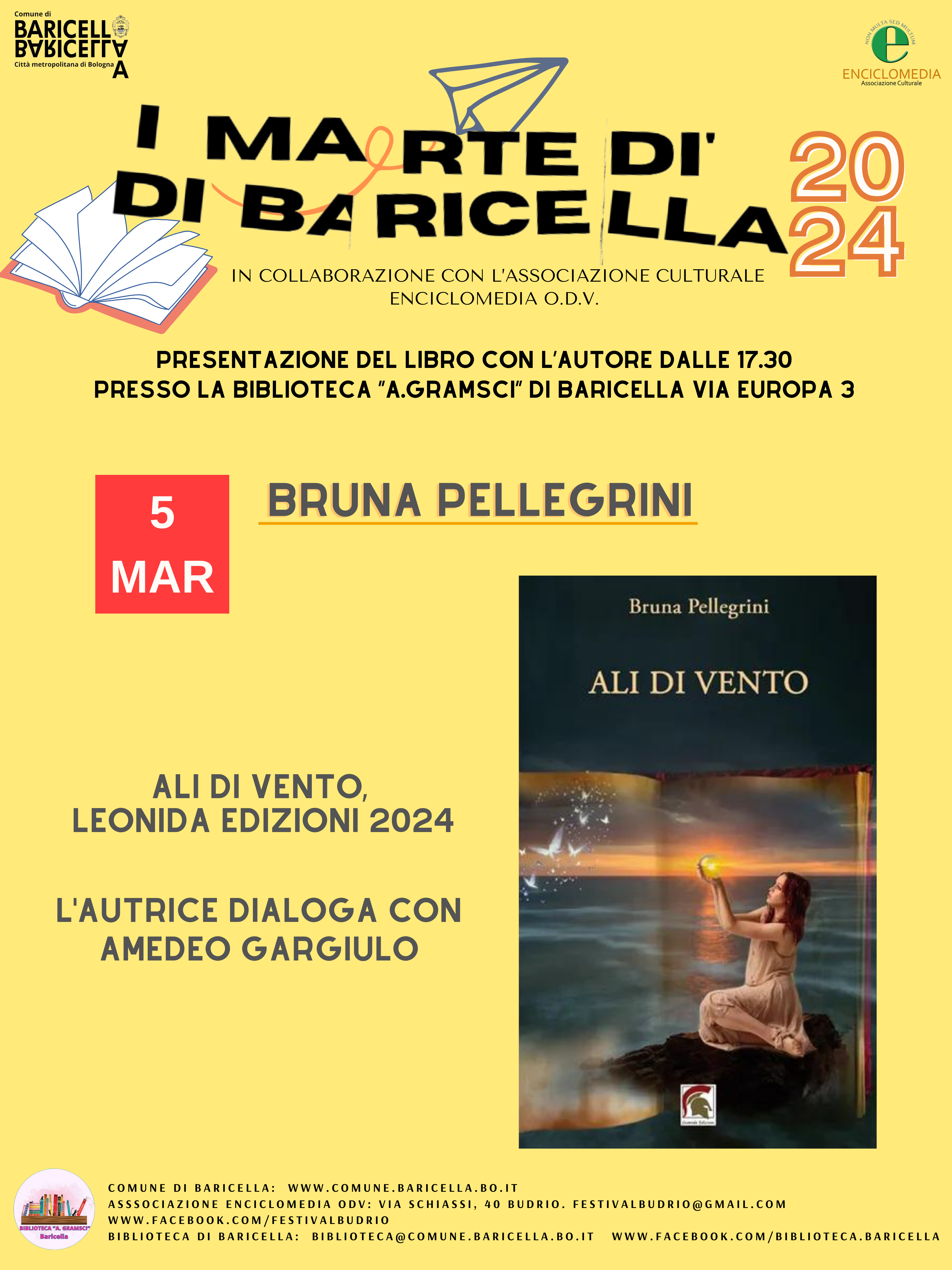 - Martedì 5 Marzo Bruna Pellegrini presenta “Ali di vento", Leonida Edizioni 2024