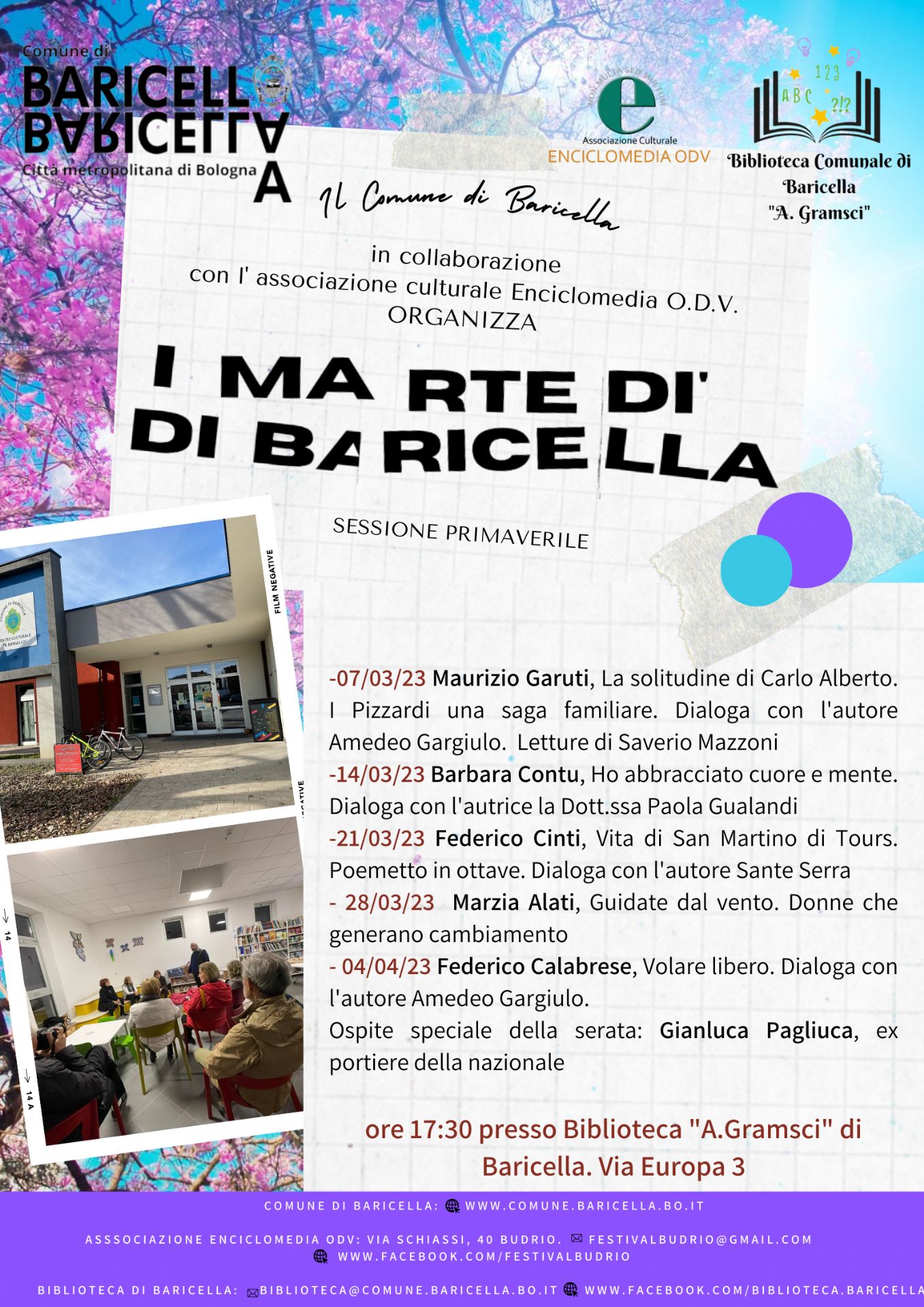 Con "I Martedì di Baricella" s'intende promuovere la cultura del e nel libro, attraverso presentazioni e incontri con l’autore, soprattutto locali.