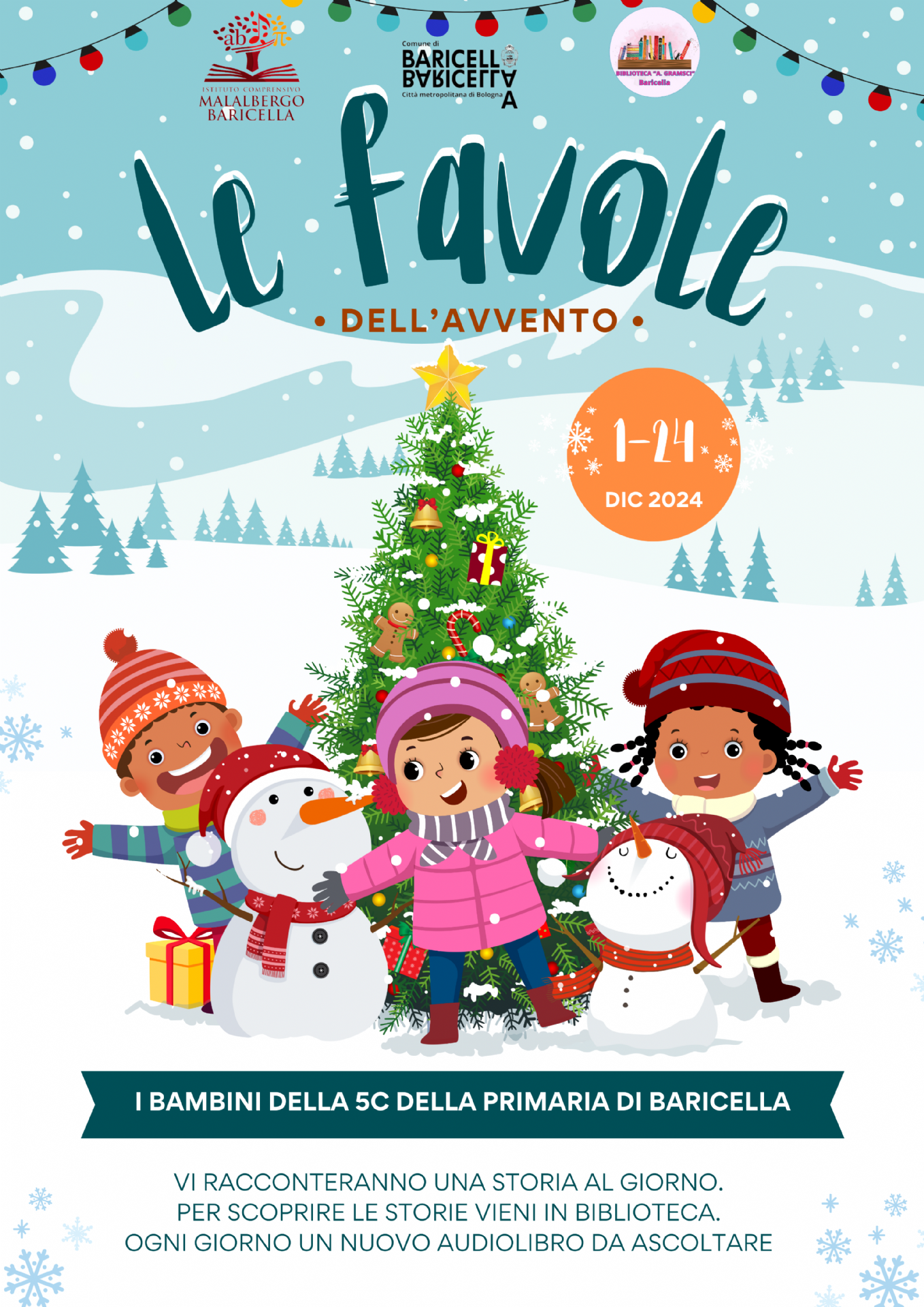 Vieni in biblioteca (in orario di apertura della biblioteca, che trovi in calce), cerca il QR code e ascolta la fiaba del giorno! Abbiamo predisposto un angolo speciale, dove potrete vivere insieme questo magico momento: organizzatevi in gruppo, sedetevi comodi e lasciatevi trasportare dalla storia, ascoltandola attraverso una cassa dedicata. Un’esperienza che unisce grandi e piccoli nel vero spirito del Natale!