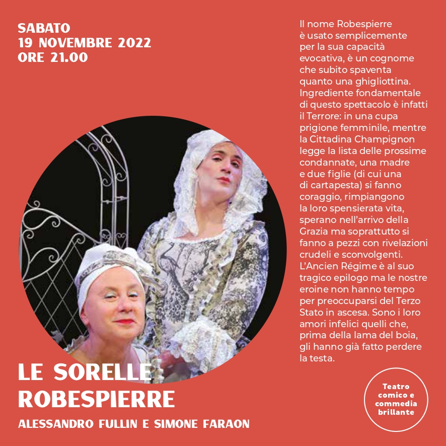 In scena Le sorelle Robespierre con Alessandro Fullin e Simone Faraon.