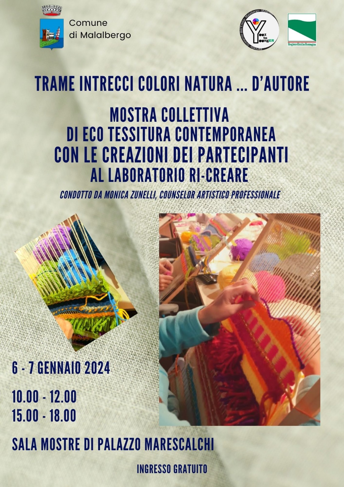Sabato 6 Gennaio e Domenica 7 Gennaio presso la sala mostre del Palazzo Marescalchi sarà esposta la mostra collettiva con le creazioni dei partecipanti al laboratorio Ri-Creare.