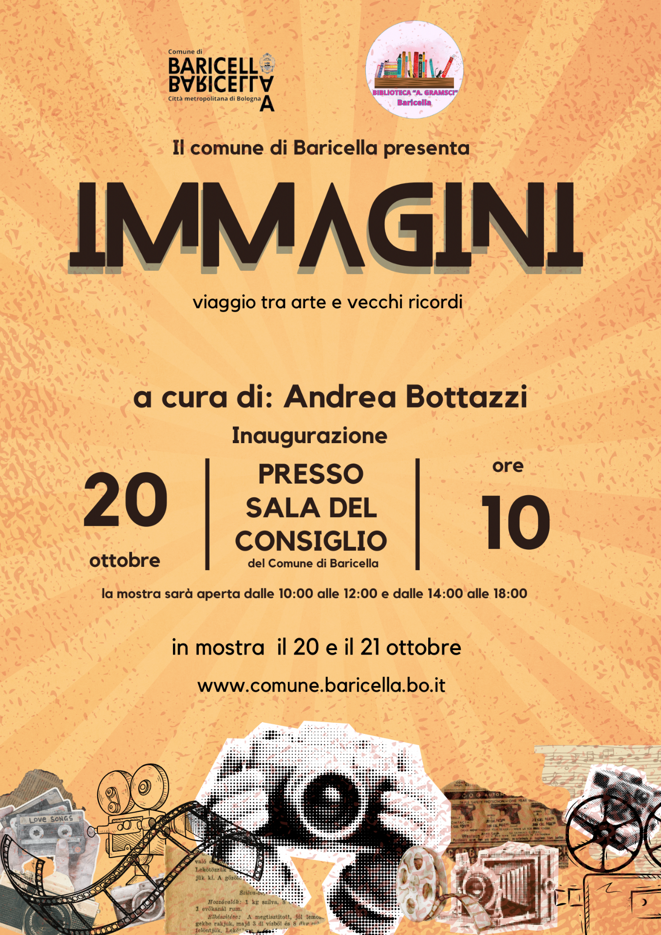 Non ci resta che invitarvi all’inaugurazione della mostra che ricordiamo inaugura il giorno 20 ottobre alle ore 10:00 presso la Sala Consiglio del Comune di Baricella .