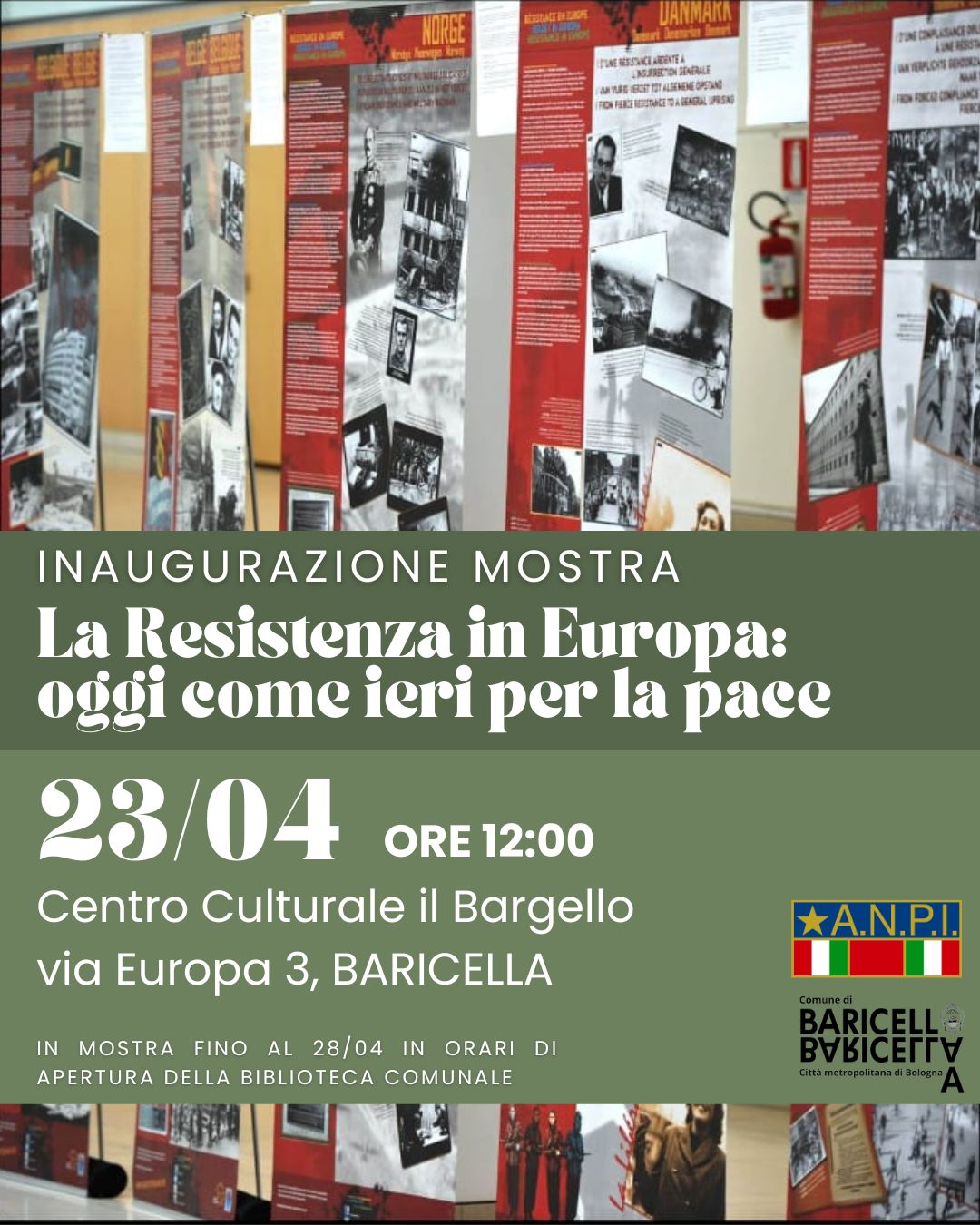 Per l'80° della liberazione dell'Italia dal nazifascismo, il Comune di Baricella con la preziosa collaborazione di ANPI propone la mostra: La Resistenza in Europa: oggi come ieri per la pace.
