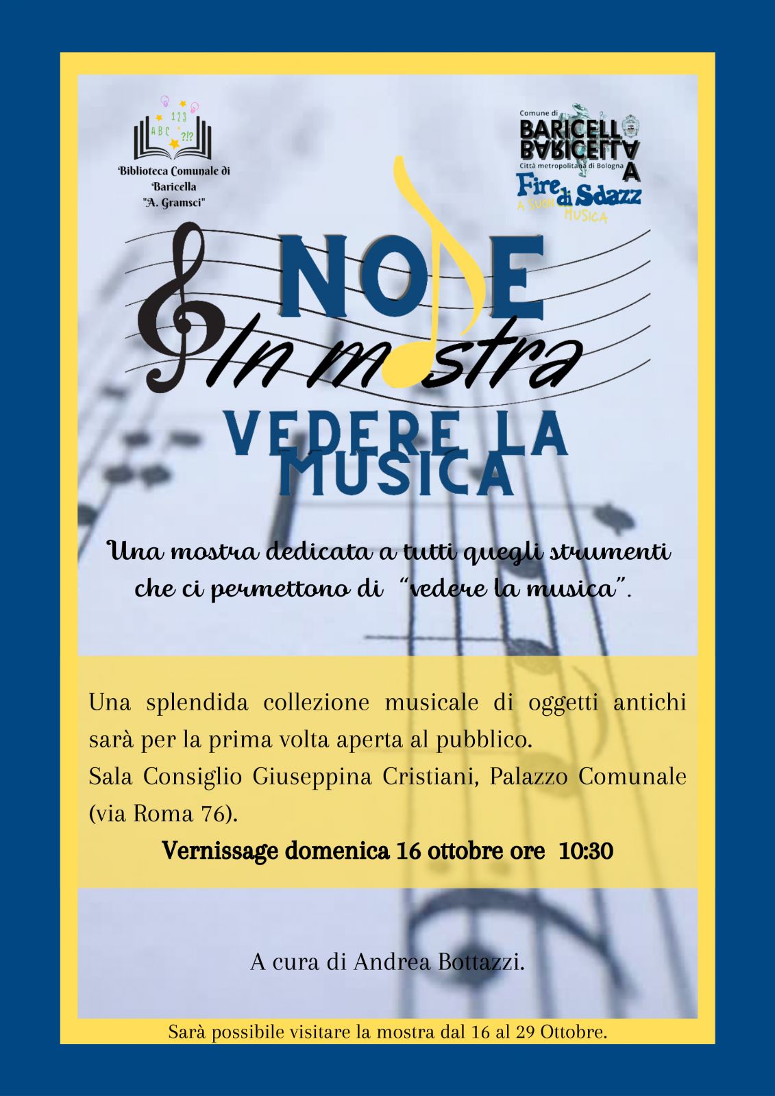 In occasione della Fire di Sdazz quest’anno a suon di musica, da domenica 16 ottobre dalle ore 10:30, sarà allestita nella Sala Consigliare del Comune di Baricella un’esposizione dedicata proprio alla musica. Troverete manufatti e reperti storici in grado di portare il visitatore in un vero e proprio viaggio nel tempo che ripercorrerà le tappe fondamentali della storia della comunicazione radio e musicale.
