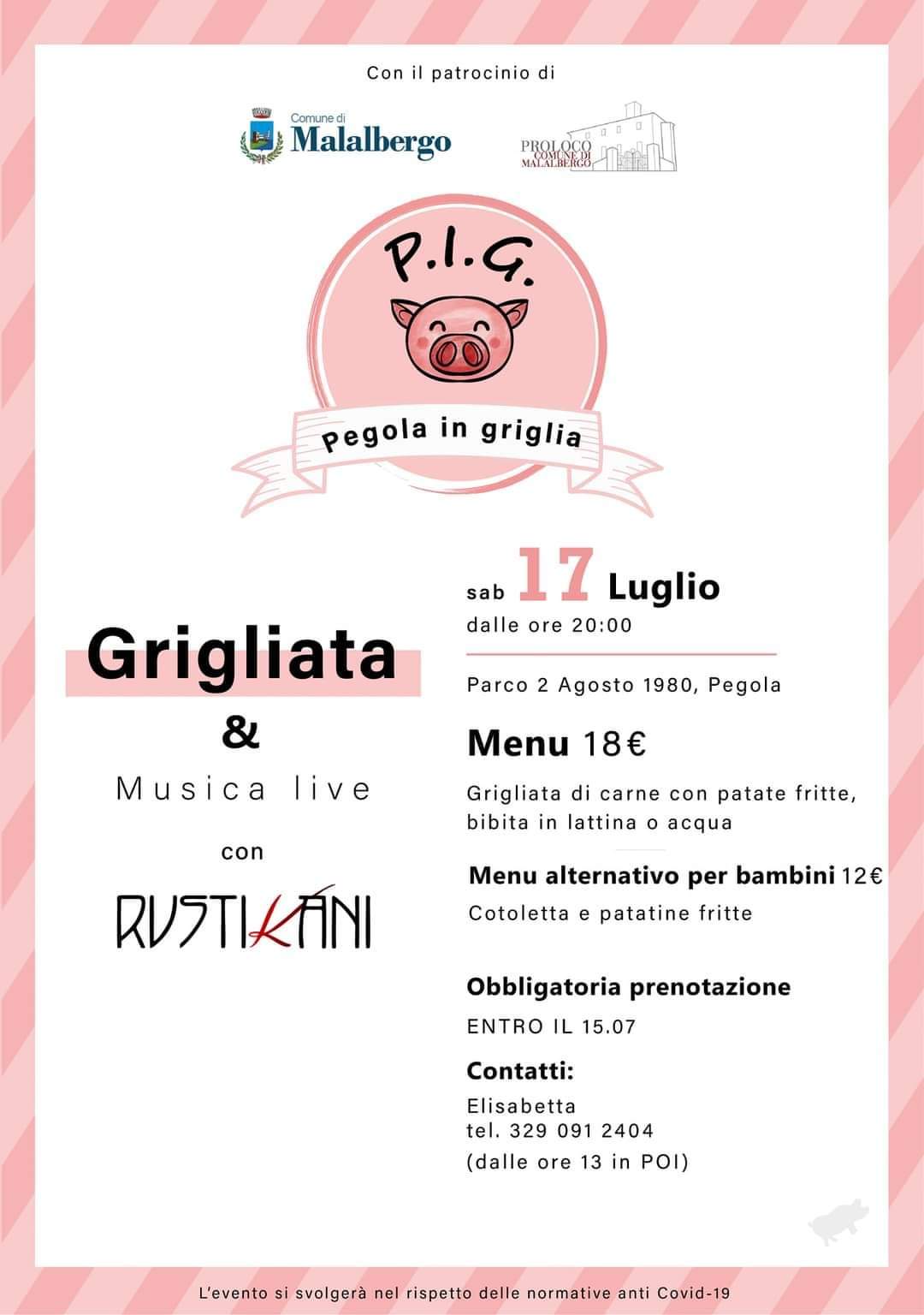 “P.I.G. PEGOLA IN GRIGLIA”, si svolgerà sabato 17 luglio 2021 in Piazza 2 Agosto 1980 a Pegola, con l’obiettivo di creare un momento di aggregazione e convivialità e per raccogliere fondi per l’evento del 26 dicembre dedicato al Natale ed ai bambini “FESTA SOTTO L’ALBERO PEGOLA”