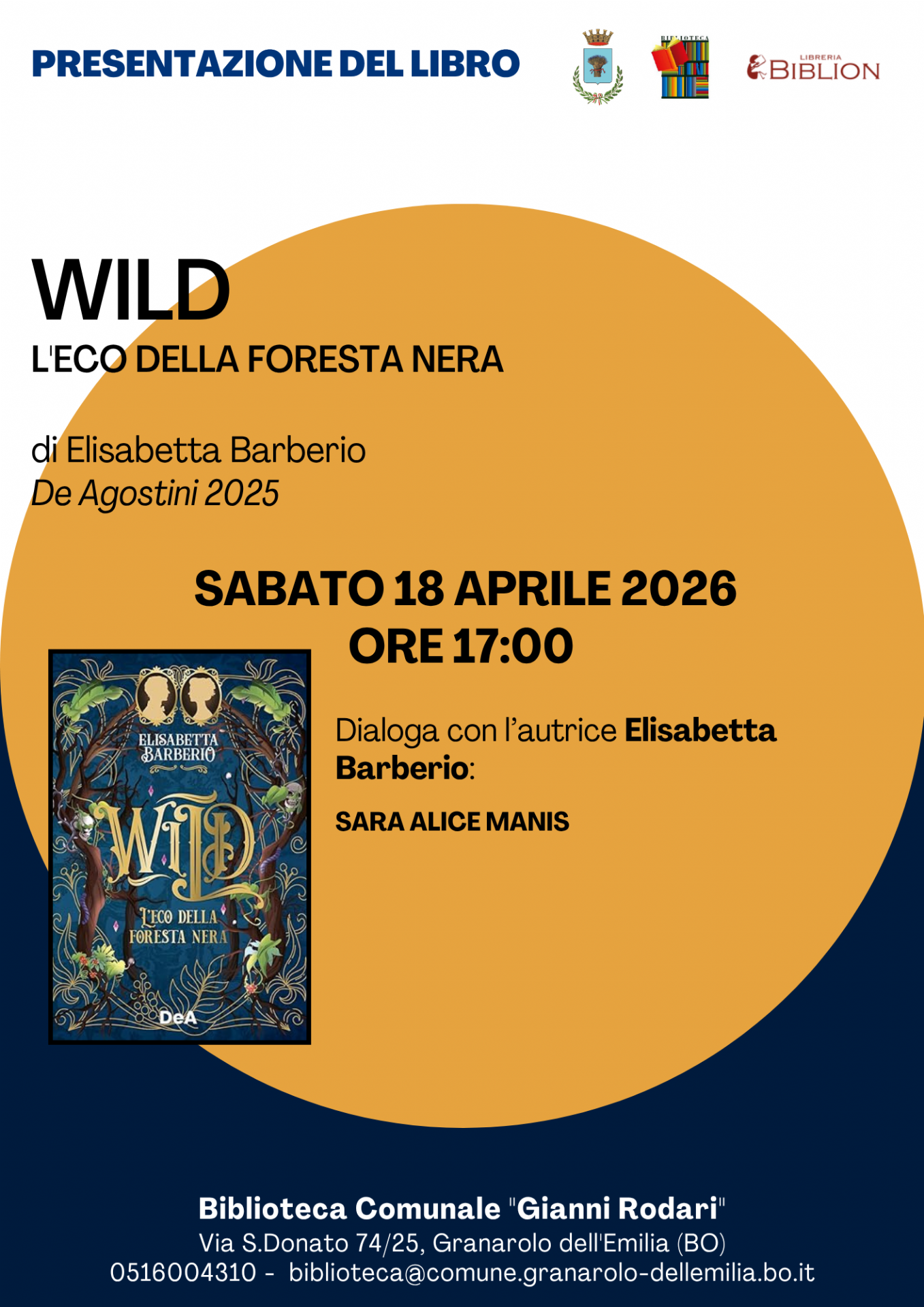 Nuovo appuntamento culturale in Biblioteca comunale “Gianni Rodari”, che sabato 18 aprile ospiterà la presentazione del libro “Wild” Elisabetta Barberio (edizioni De Agostini Libri 2025).
