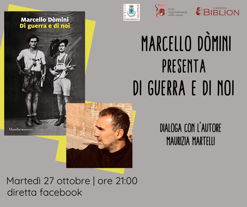 Il primo appuntamento è previsto martedì 27 ottobre alle ore 21, in diretta sui canali istituzionali social Facebook e Youtube "Città di Granarolo dell'Emilia", con la presentazione del libro “Di guerra e di noi” di Marcello Domini: la Libreria Biblion presenta e dialoga con l'autore il romanzo storico e di formazione, ambientato nei pressi di Bologna e che ci racconta la storia dell’Italia dal 1917 al 1945, fino alla liberazione dalla dittatura fascista.