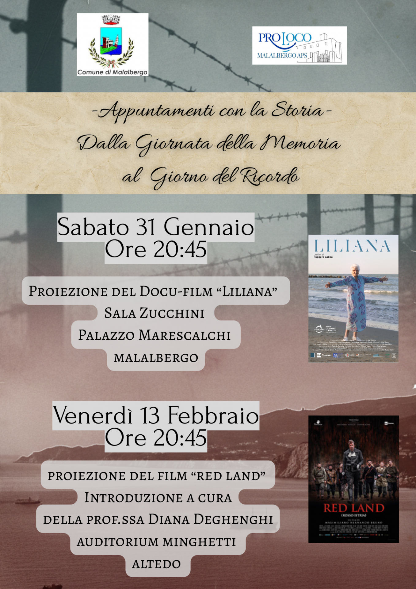 Commemorazione del Giorno del Ricordo, con la proiezione del film “Red Land – Rosso Istria” preceduta dall'introduzione della prof.ssa Diana Deghenghi. Il film affronta il dramma delle foibe e dell’esodo giuliano-dalmata, una pagina dolorosa della storia del Novecento che merita conoscenza e consapevolezza, nel rispetto delle vittime e delle loro famiglie.