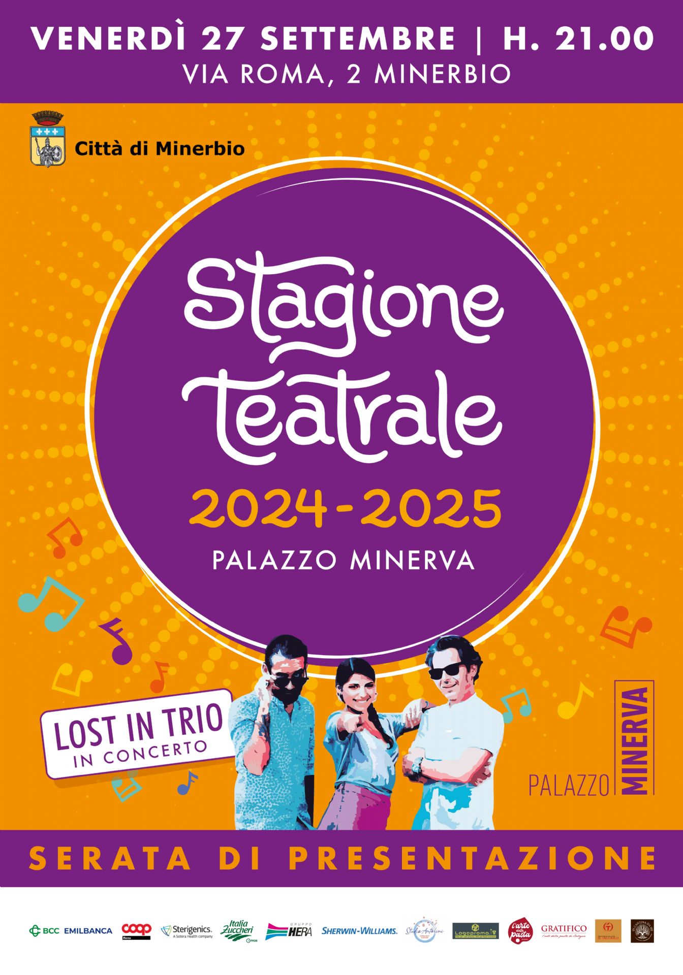 Venerdì 27 settembre 2024 alle ore 21.00 si terrà la presentazione della stagione teatrale 2024/2025 di Palazzo Minerva.