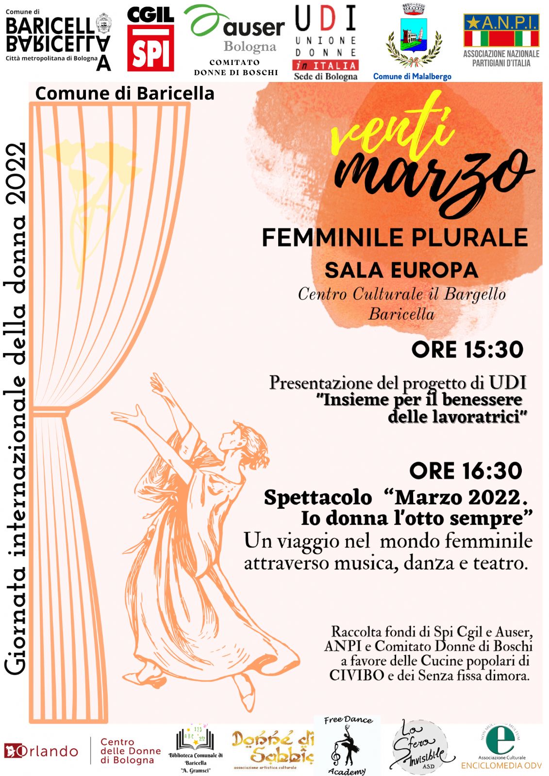 Spettacolo: “Marzo 2022. Io donna l'otto sempre” Un viaggio nel mondo femminile attraverso musica, danza e teatro. Coordinamento e regia di Loredana Naborri.
