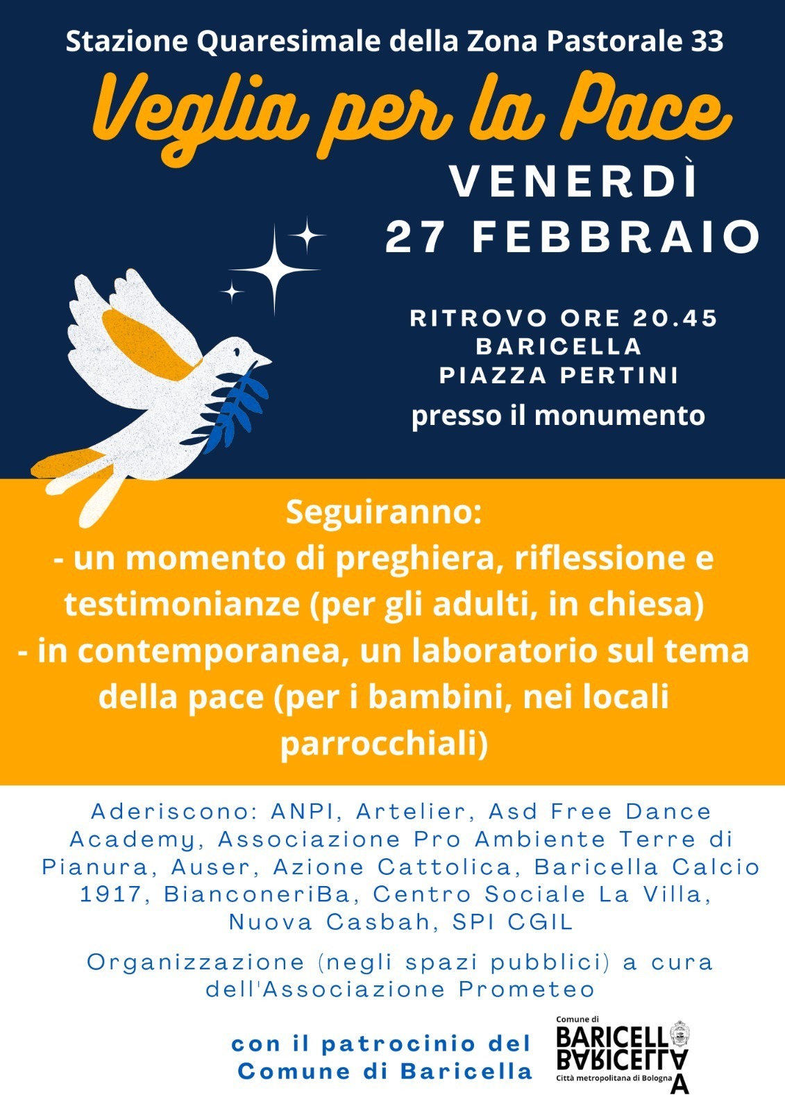 La Zona Pastorale 33 organizza una Veglia per la Pace, un momento di testimonianza dai luoghi di guerra, finalizzato a promuovere cultura della pace, solidarietà e coesione sociale sul territorio.