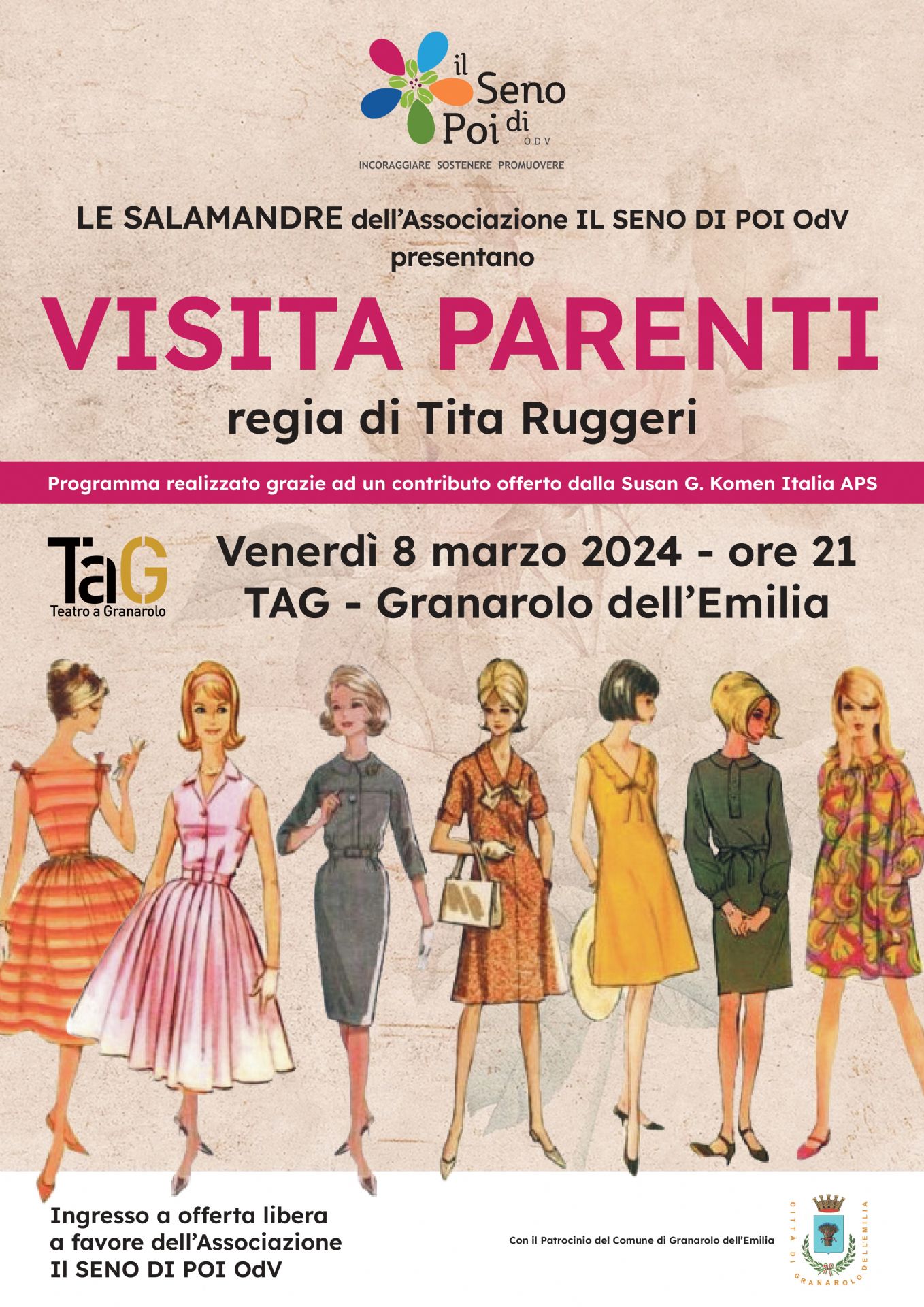 L'entrata è a offerta libera a favore dell'Associazione IL SENO DI POI ODV che sostiene e accompagna donne con diagnosi di tumore al seno.