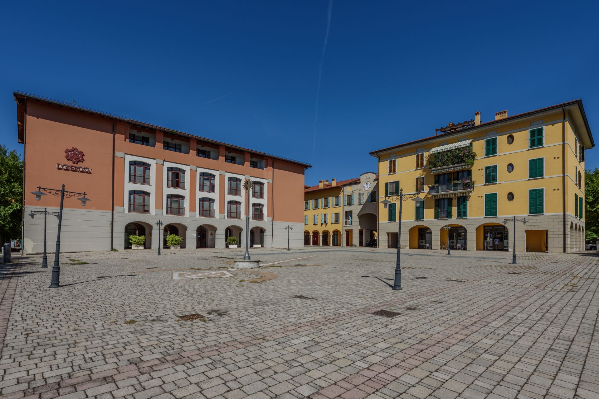 La piazza in particolare, su cui si affacciano attività commerciali e il terziario-direzionale, è arricchita dalla presenza di uno gnomone e una meridiana allineate in modo da collegarsi all'arco di passaggio verso via XXV Aprile, su cui campeggia un orologio tradizionale. Nel 2008 questo progetto è stato selezionato tra i migliori del Premio Philippe Rotthier European Prize per la progettazione e la costruzione di nuove città efficienti.