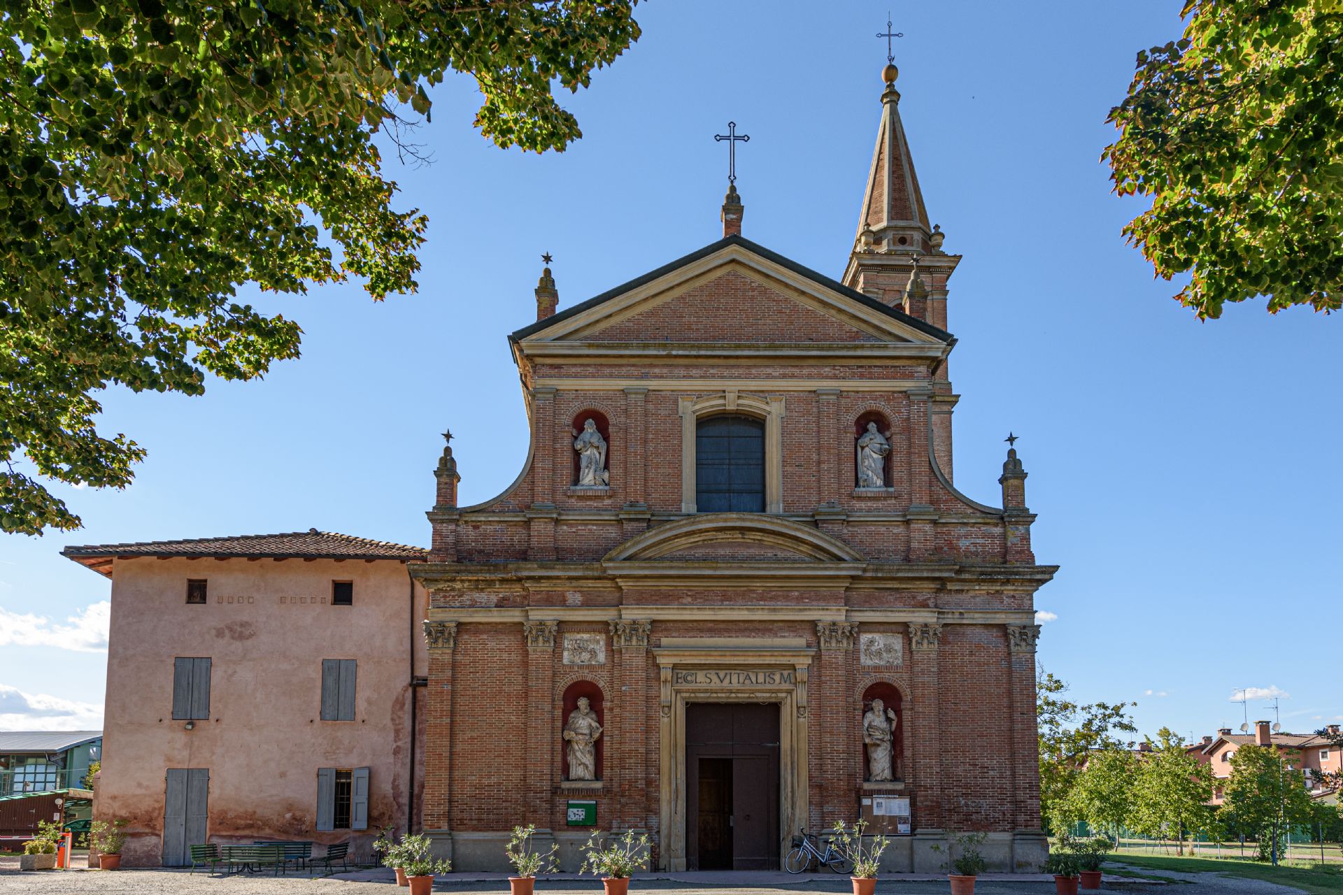 Dietro l’altare maggiore è presente la tela raffigurante la Madonna col Bambino e i Santi Vitale e Andrea, mentre nella volta affrescata è rappresentata “La gloria di San Vitale”, risalente alla fine del ‘600.