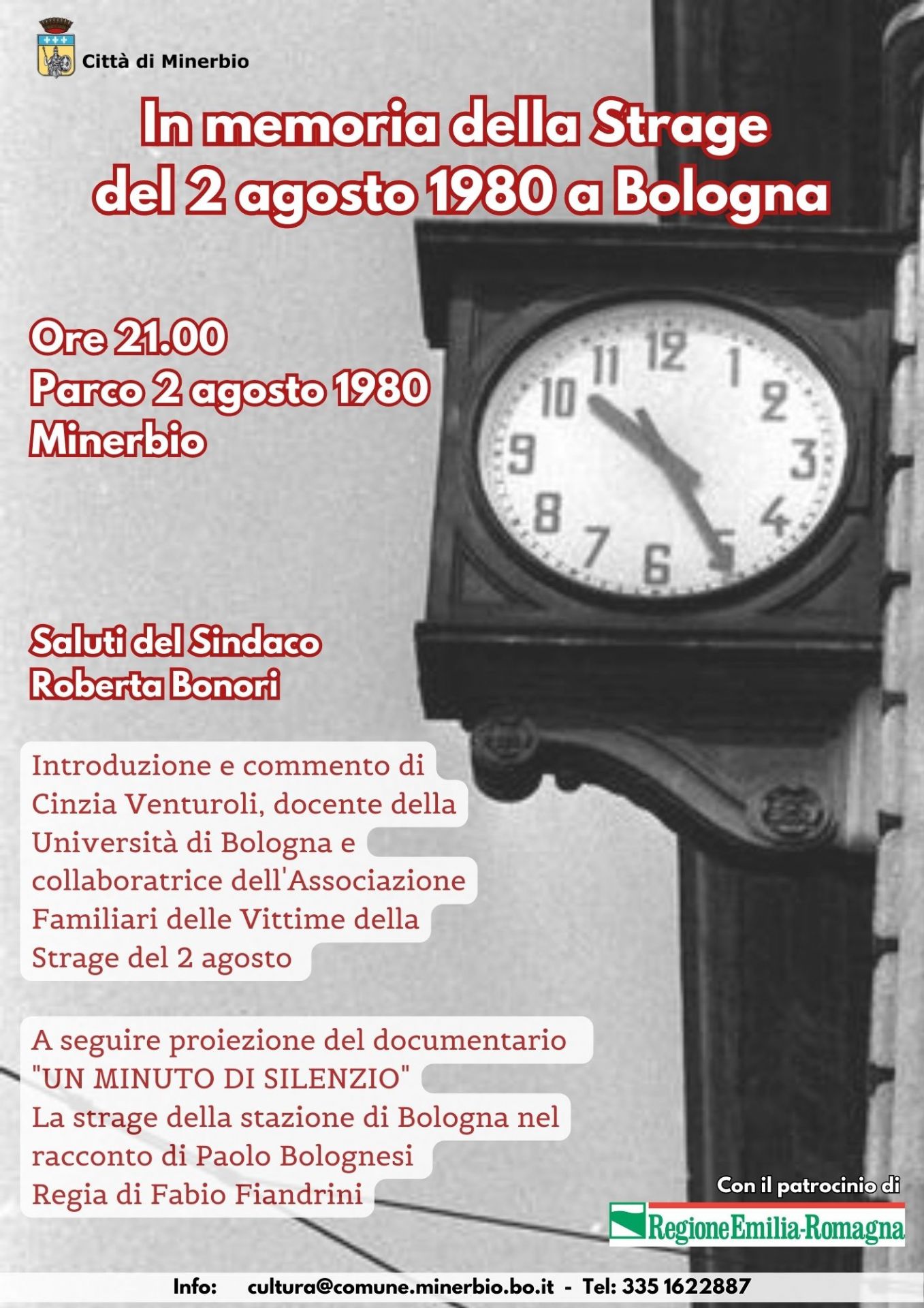 Mercoledì 2 agosto 2023 si terrà a Minerbio presso il Parco 2 agosto 1980 alle ore 21.00 un'iniziativa in memoria della strage di Bologna dei 2 agosto 1980.