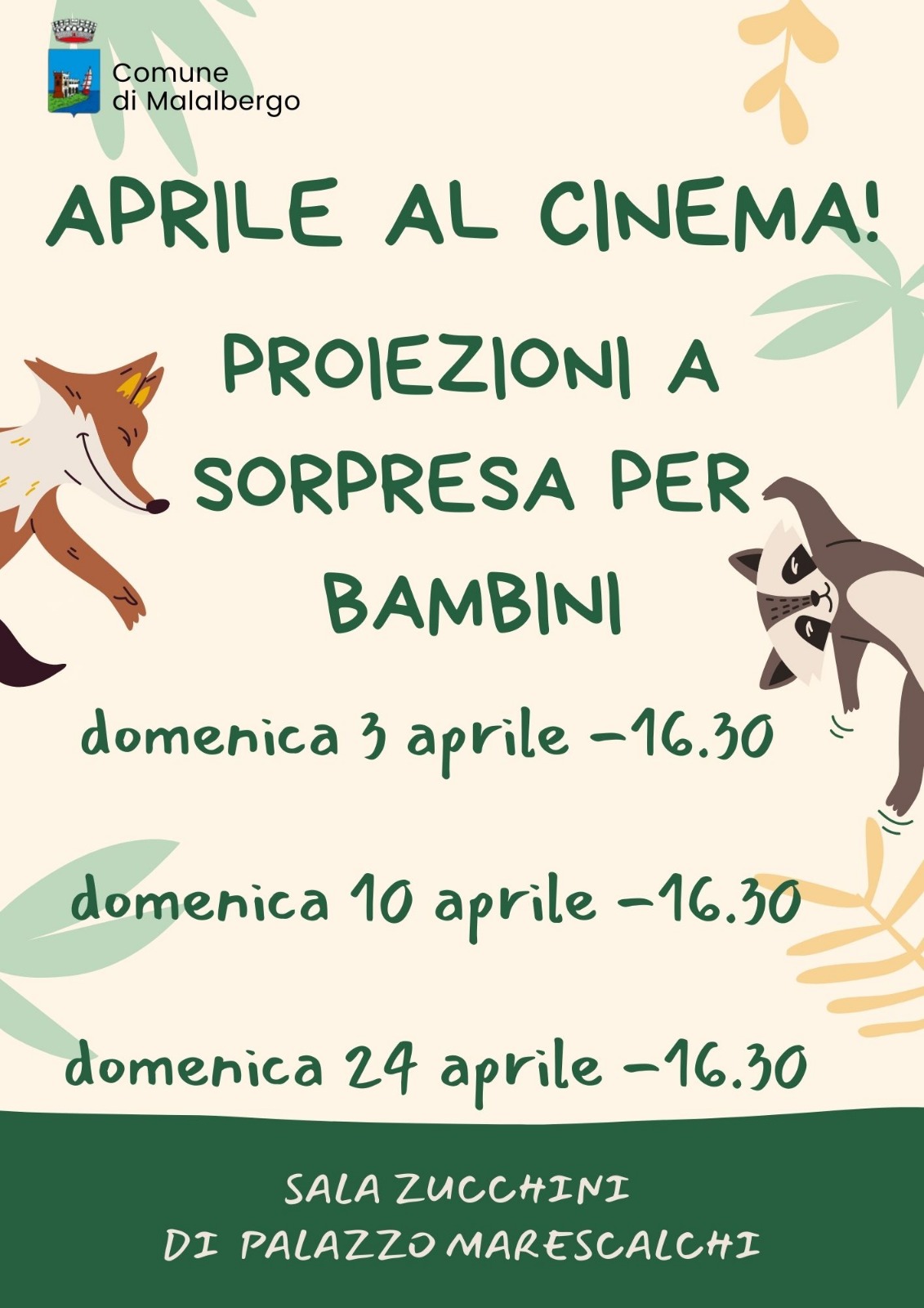 Il calendario delle "proiezioni a sorpresa" delle domeniche di aprile in Sala Zucchini a Palazzo Marescalchi.