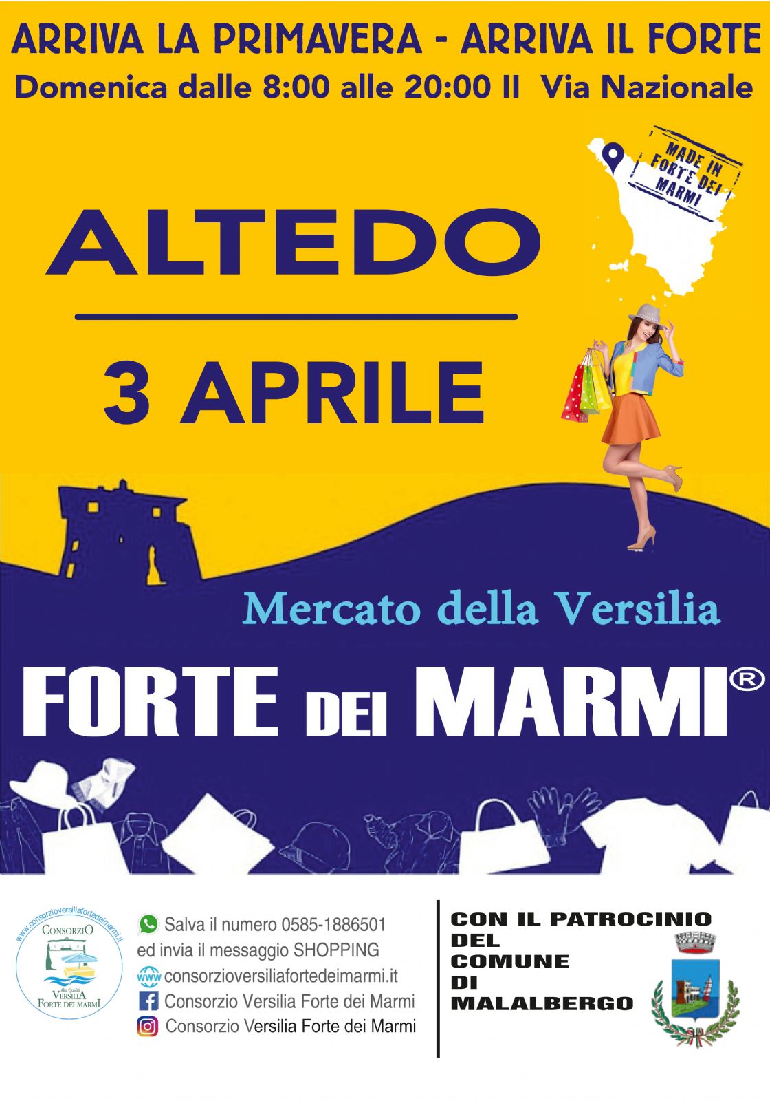 Il Mercato della Versilia torna ad Altedo domenica 3 aprile, dalle ore 8.00 alle 20.00, lungo via Nazionale e in Piazza XXV Aprile.