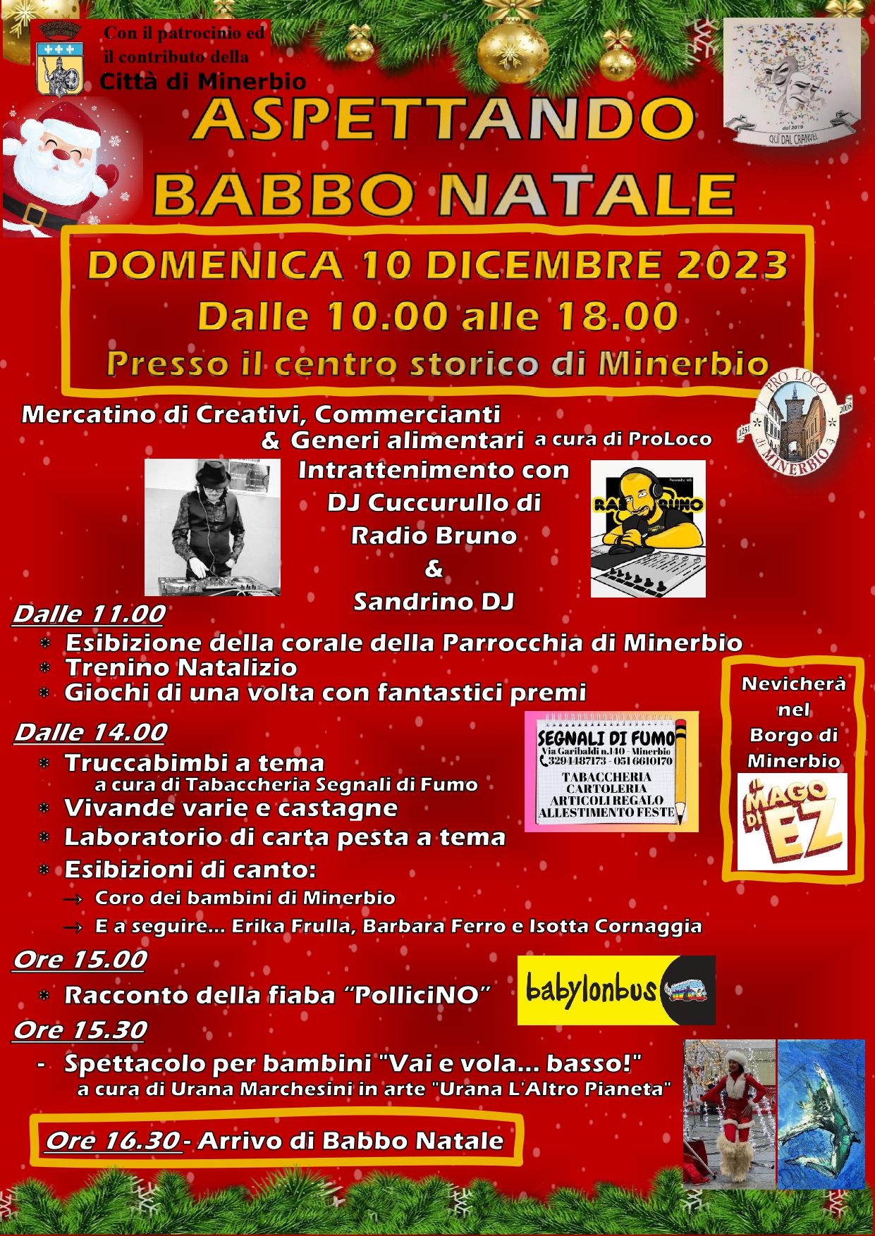 Domenica 10 dicembre si terrà l'evento "Aspettando Babbo Natale", nel centro storico di Minerbio, dalle ore 10 alle ore 18.