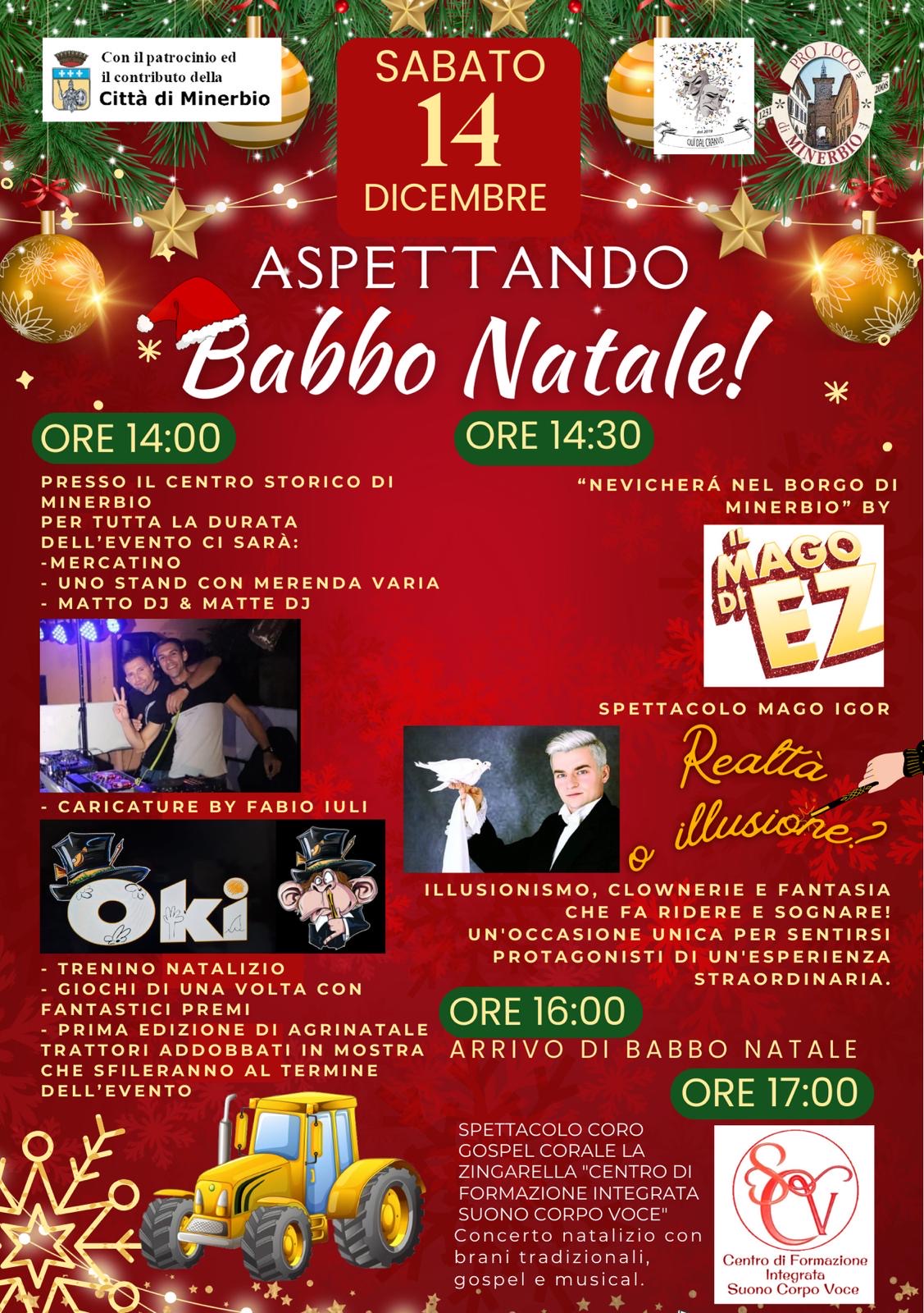 Sabato 14 dicembre 2024 si terrà l'evento "Aspettando Babbo Natale a Minerbio 2024", per le vie del Borgo storico di Minerbio, dalle ore 14 alle ore 18, organizzata da Qui dal Cranvèl e Pro Loco di Minerbio, con dolcetti e animazione per tutte le età. E alle ore 16.00 arriva Babbo Natale!