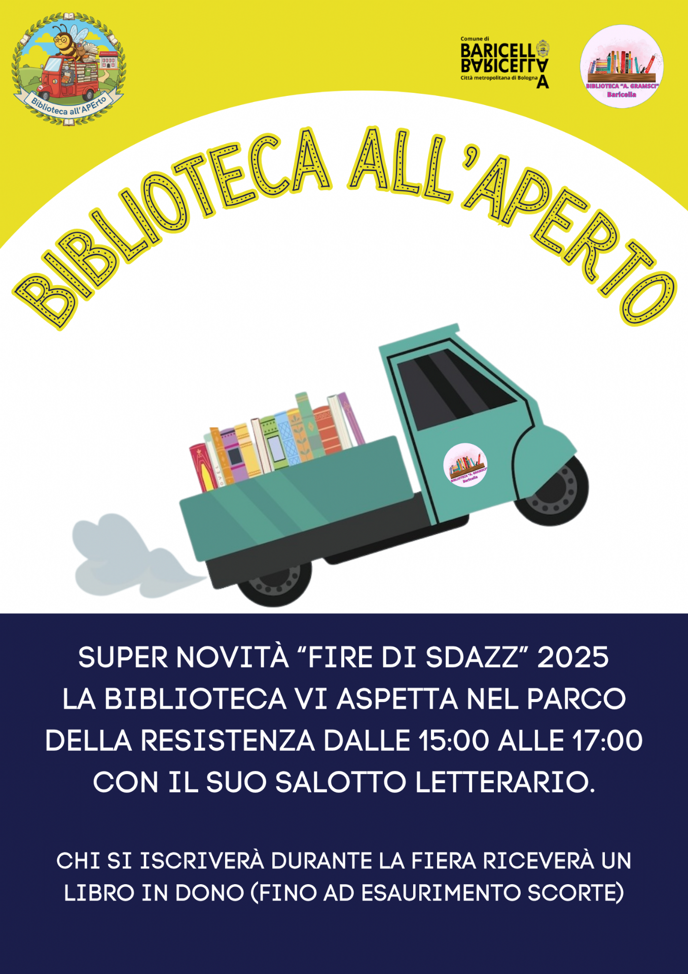 In occasione della Fire di Sdazz 2025, la Biblioteca comunale di Baricella propone una novità speciale: domenica 19 ottobre usciremo dalle nostre sale per incontrare direttamente cittadini, famiglie e lettori, portando la nostra Piazza democratica del sapere tra la gente.