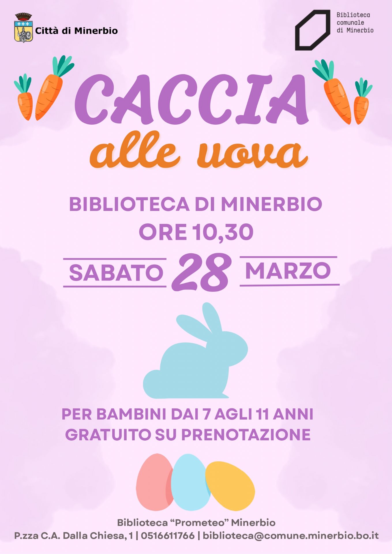 Sabato 28 marzo 20256 alle ore 10.30 torna la divertentissima Caccia alle uova in Biblioteca a Minerbio per bambini dai 7 ai 11 anni.