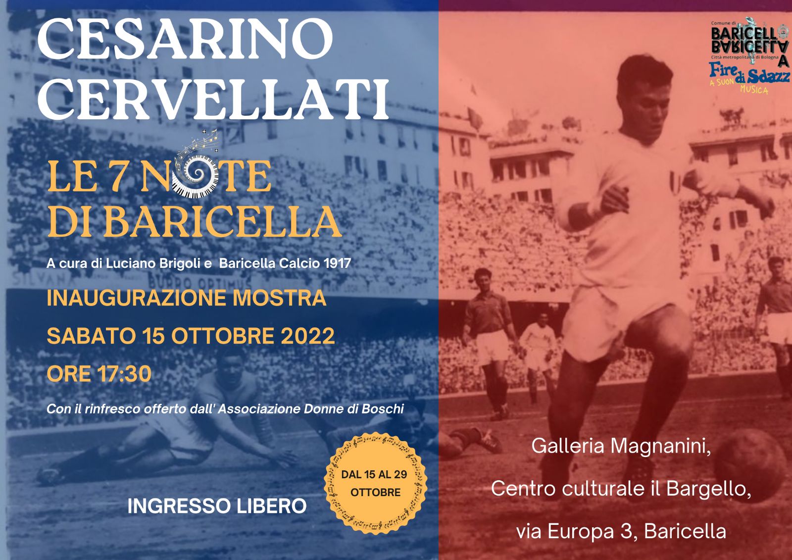 L’esposizione, a cura di Luciano Brigoli e Baricella Calcio 1917 , sarà visitabile dal 15 al 29 Ottobre, presso la Galleria Magnanini, centro Culturale il Bargello.