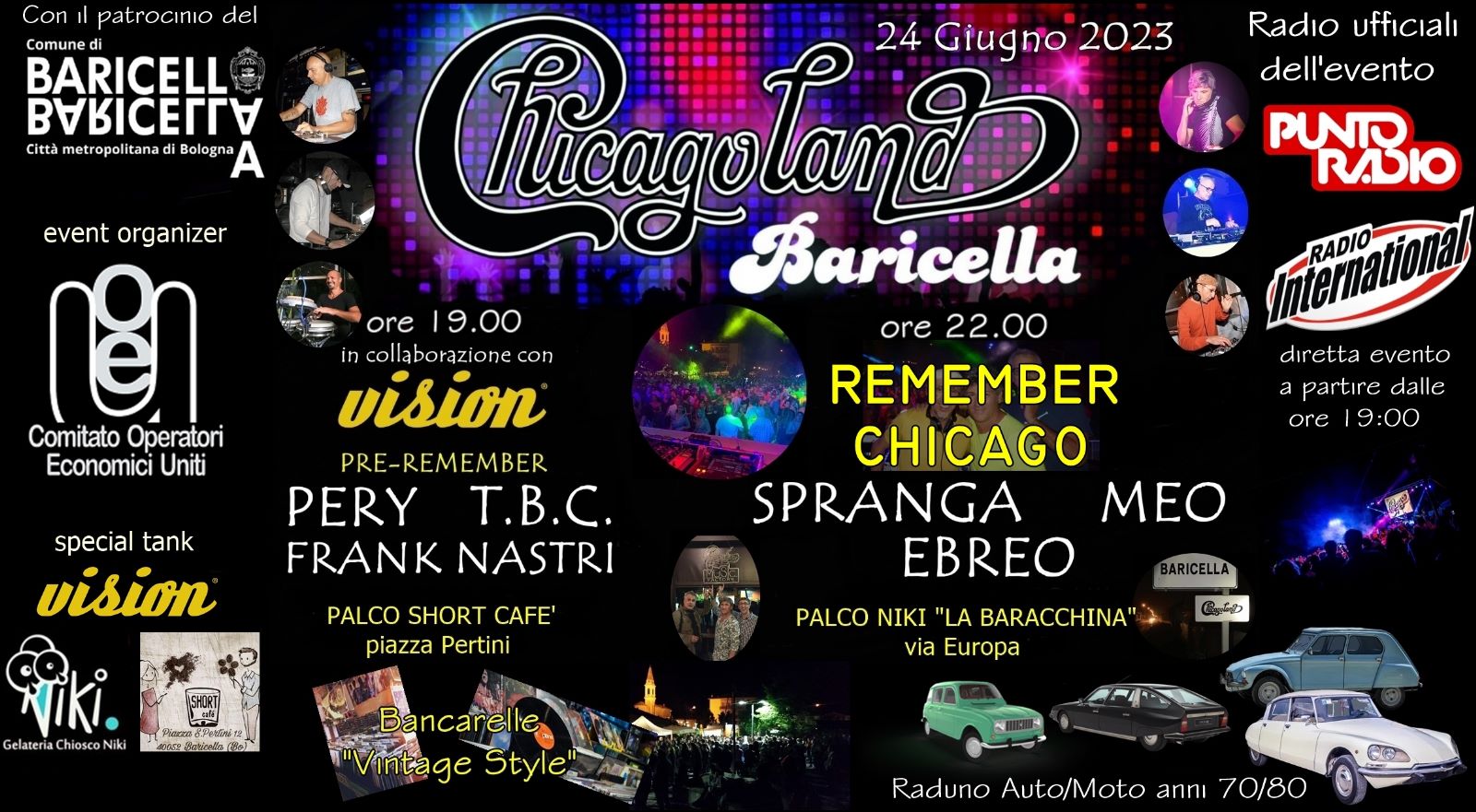 L'evento di quest'anno si svolge dalle 19:00 in Piazza Pertini con un grandissimo "Pre Remember Chicago" con i DJ T.B.C. e PERY e le percussioni di FRANK NASTRI .