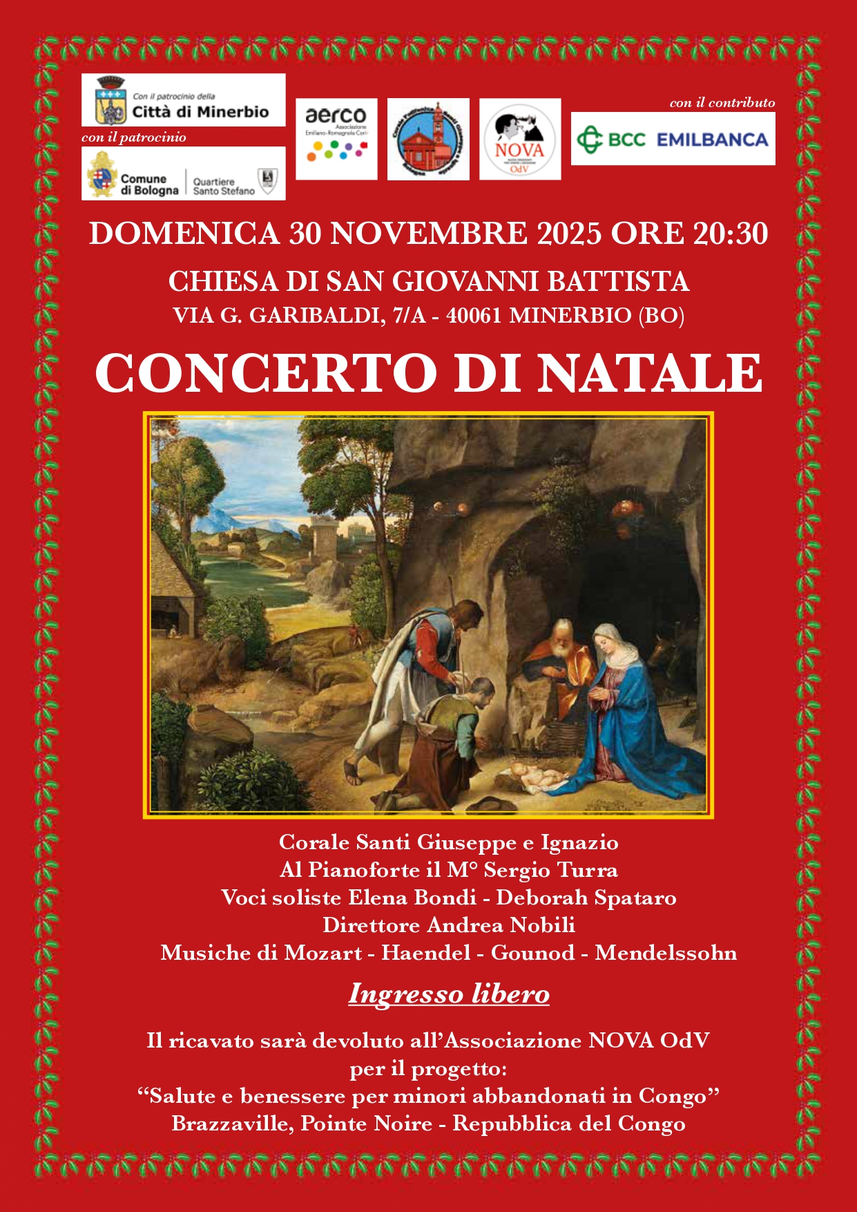 Domenica 30 novembre alle ore 20:30, presso la Chiesa di San Giovanni Battista, si terrà il tradizionale Concerto di Natale.