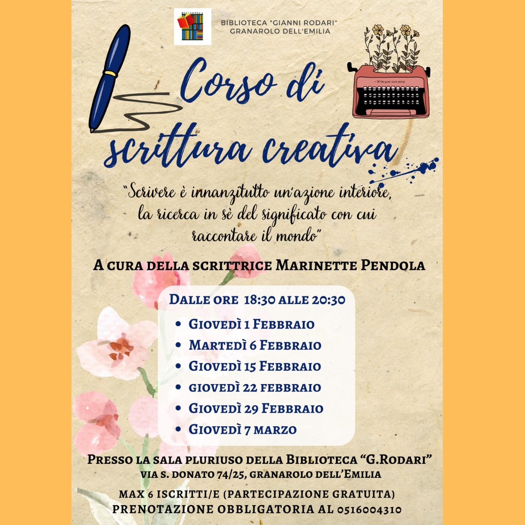 Sei appuntamenti gratuiti per sei aspiranti scrittori e scrittrici. Si comincia giovedì 1 febbraio in sala pluriuso in biblioteca comunale. Insegnante Marinette Pendola.