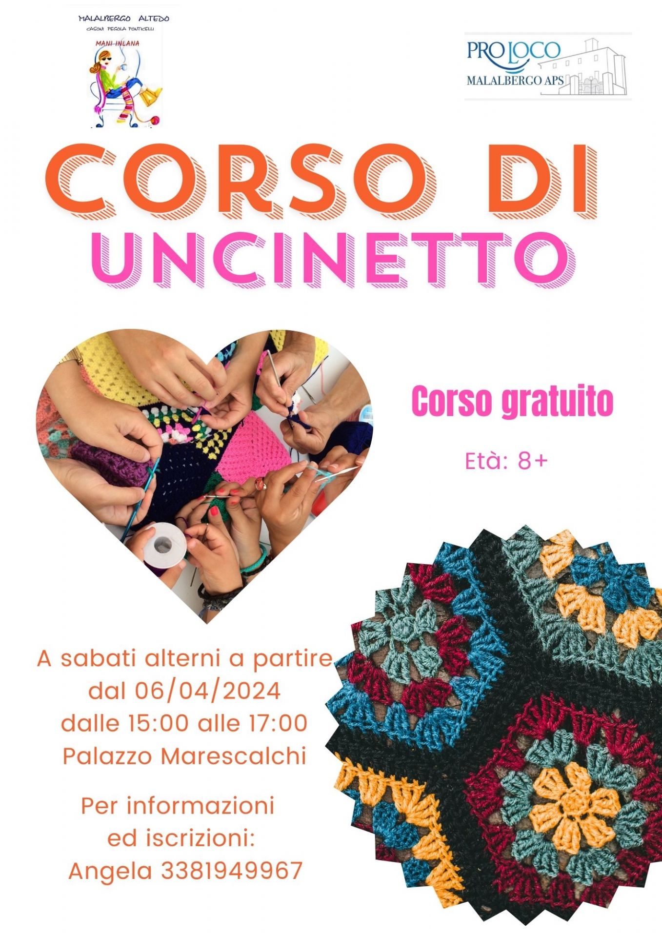 Corso di uncinetto, a sabati alterni a partire dal 06 Aprile dalle 15:00 alle 17:00 presso Palazzo Marescalchi.