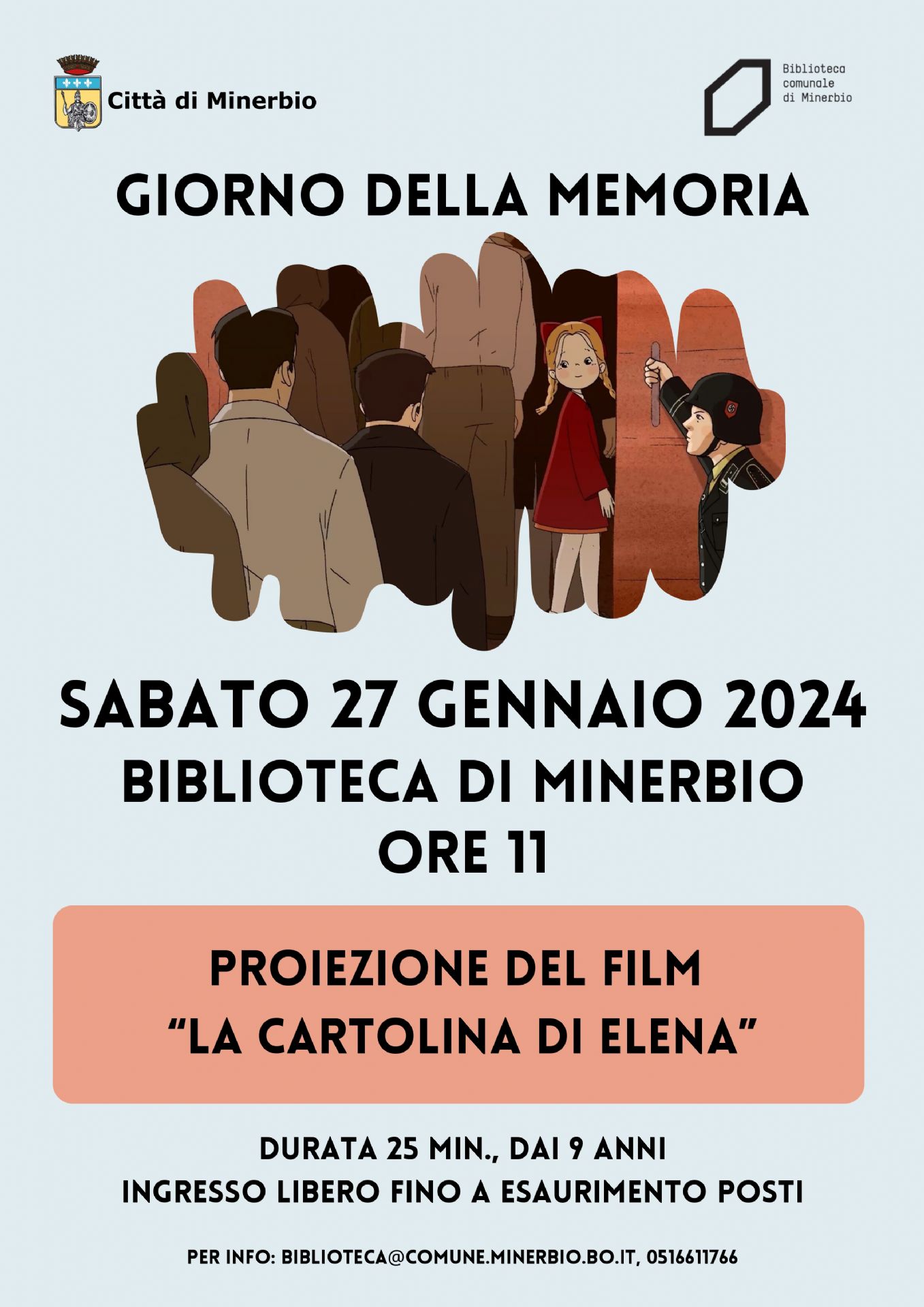 Sabato 27 gennaio 2024, in occasione del Giorno delle Memoria, alle ore 11.00 presso la Biblioteca Comunale di Minerbio si terrà la proiezione del film: La Cartolina di Elena