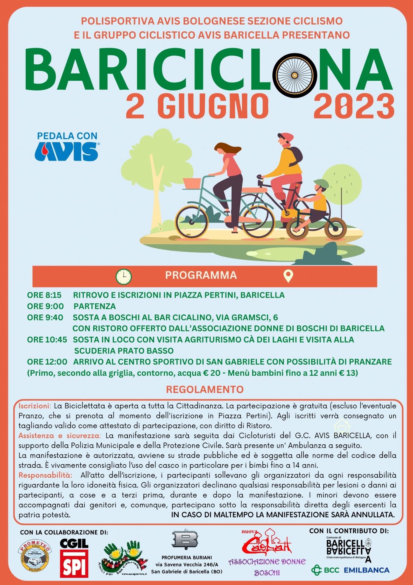 Dopo ben tre anni di assenza, dovuta alla pandemia, torna finalmente a Baricella venerdì 2 Giugno la tradizionale pedalata organizzata dal Gruppo territoriale Baricella della Polisportiva Avis Bolognese, sezione ciclismo.