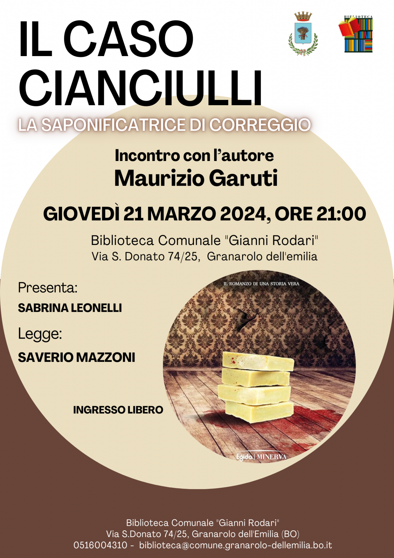 Giovedì 21 maro, alle ore 21 in biblioteca comunale, si parla di una celebre storia di cronaca nera: "Il caso Cianciulli, la saponificatrice di Correggio". Sabrina Leonelli presenta Maurizio Garuti, autore del romanzo dedicato a questa triste e inquietante storia vera.