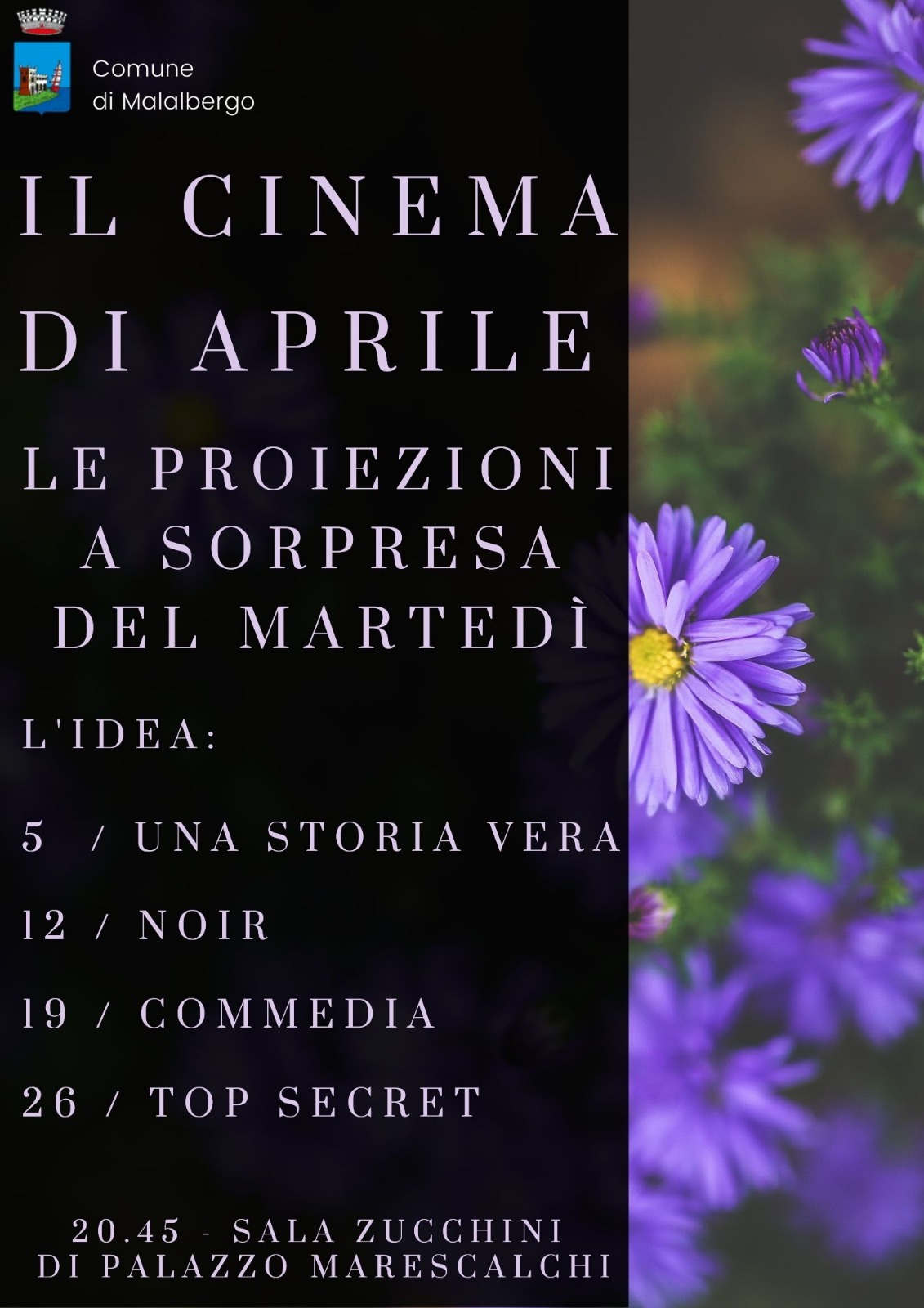 Il calendario delle "proiezioni a sorpresa" dei martedì di aprile in Sala Zucchini a Palazzo Marescalchi.
