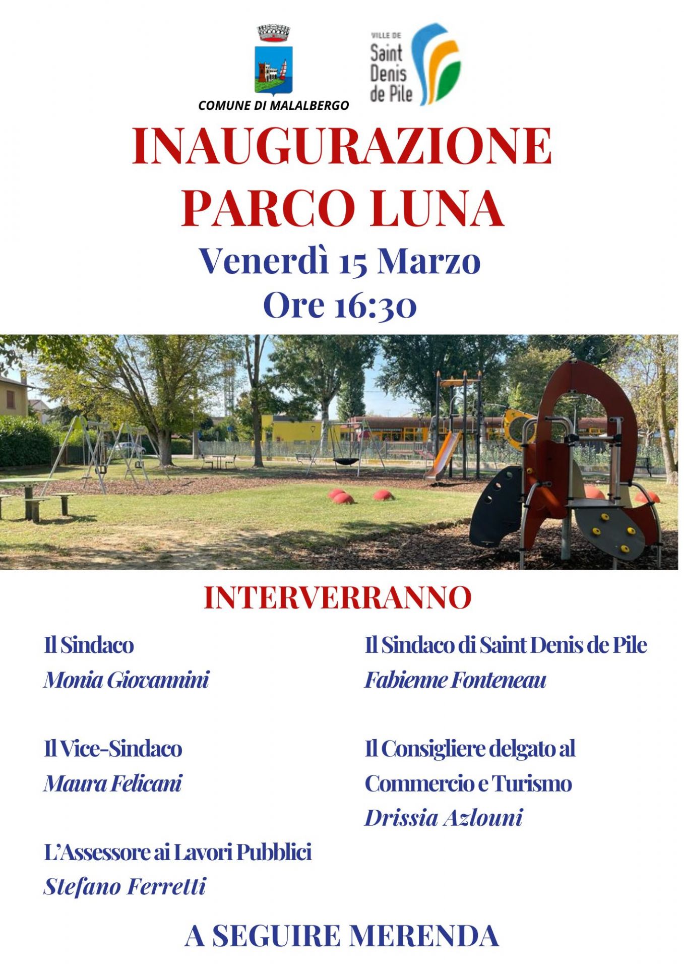 Inaugurazione Parco Luna, Venerdì 15/03 ore 16:30.