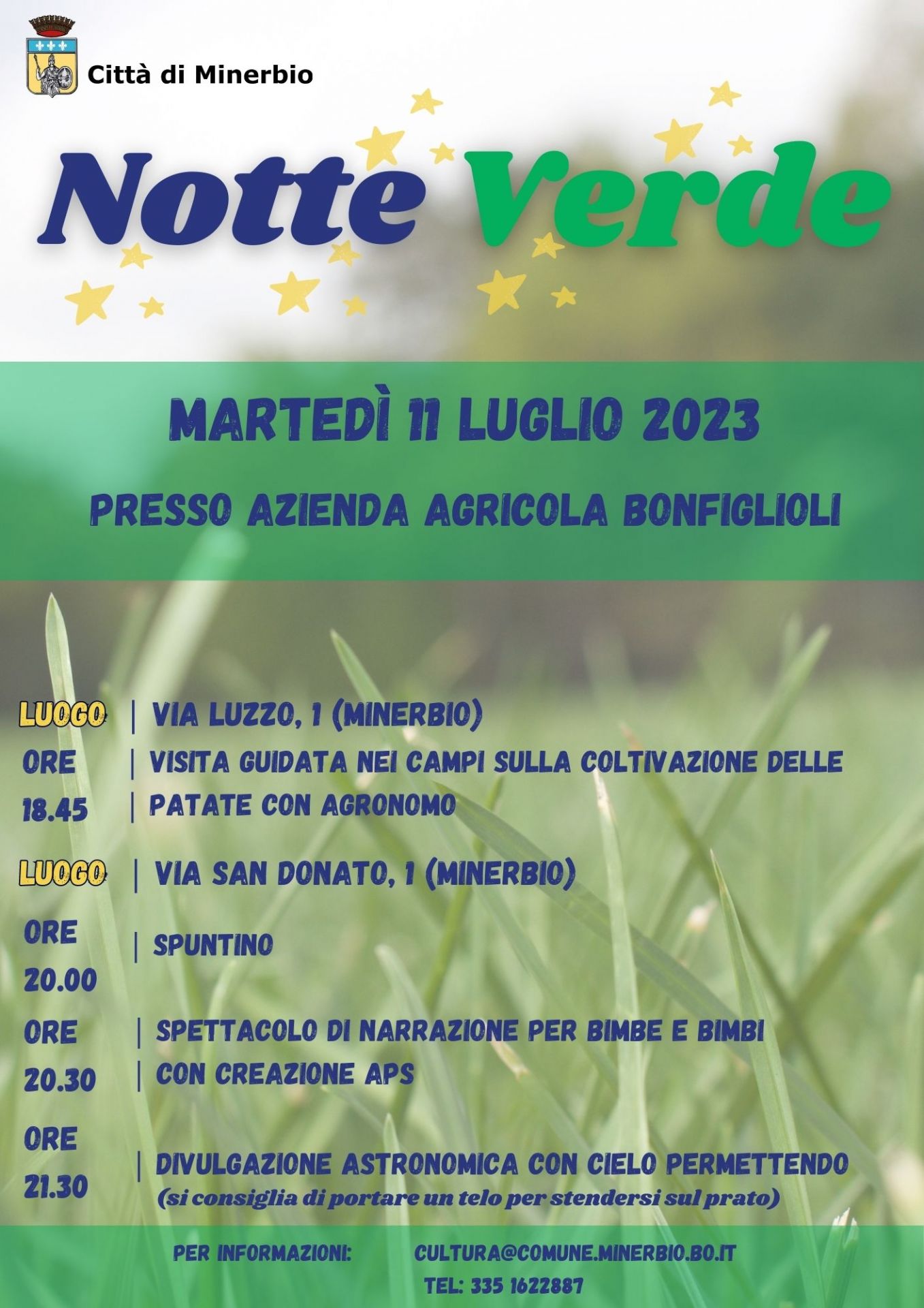 Martedì 11 luglio 2023 presso l'Azienda Agricola Bonfiglioli torna a Minerbio LA NOTTE VERDE