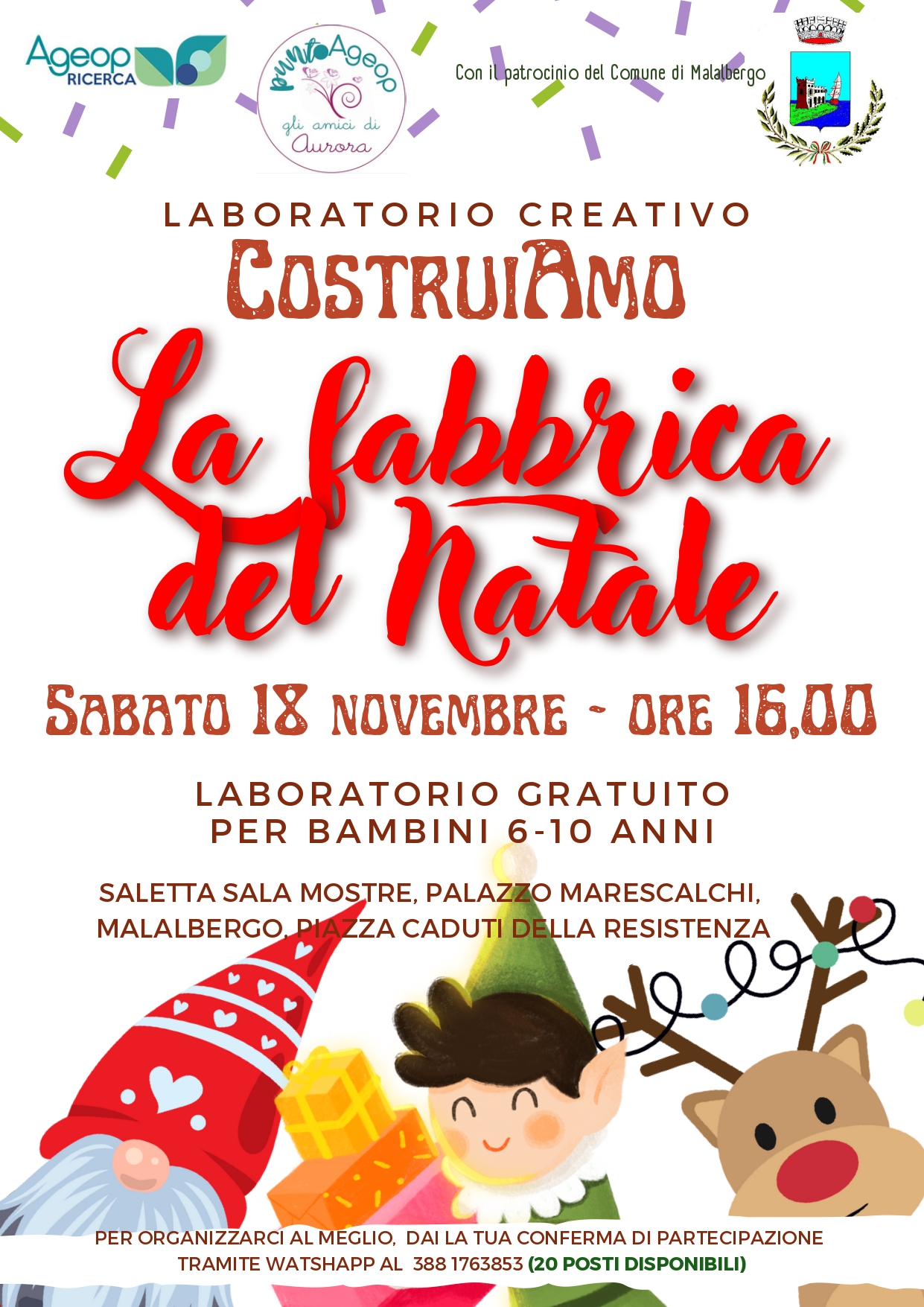 Sabato 18 Novembre alle ore 16:00 nella saletta adiacente alla sala mostre di Palazzo Marescalchi si svolgerà il Laboratorio la fabbrica del Natale come da volantino in allegato.