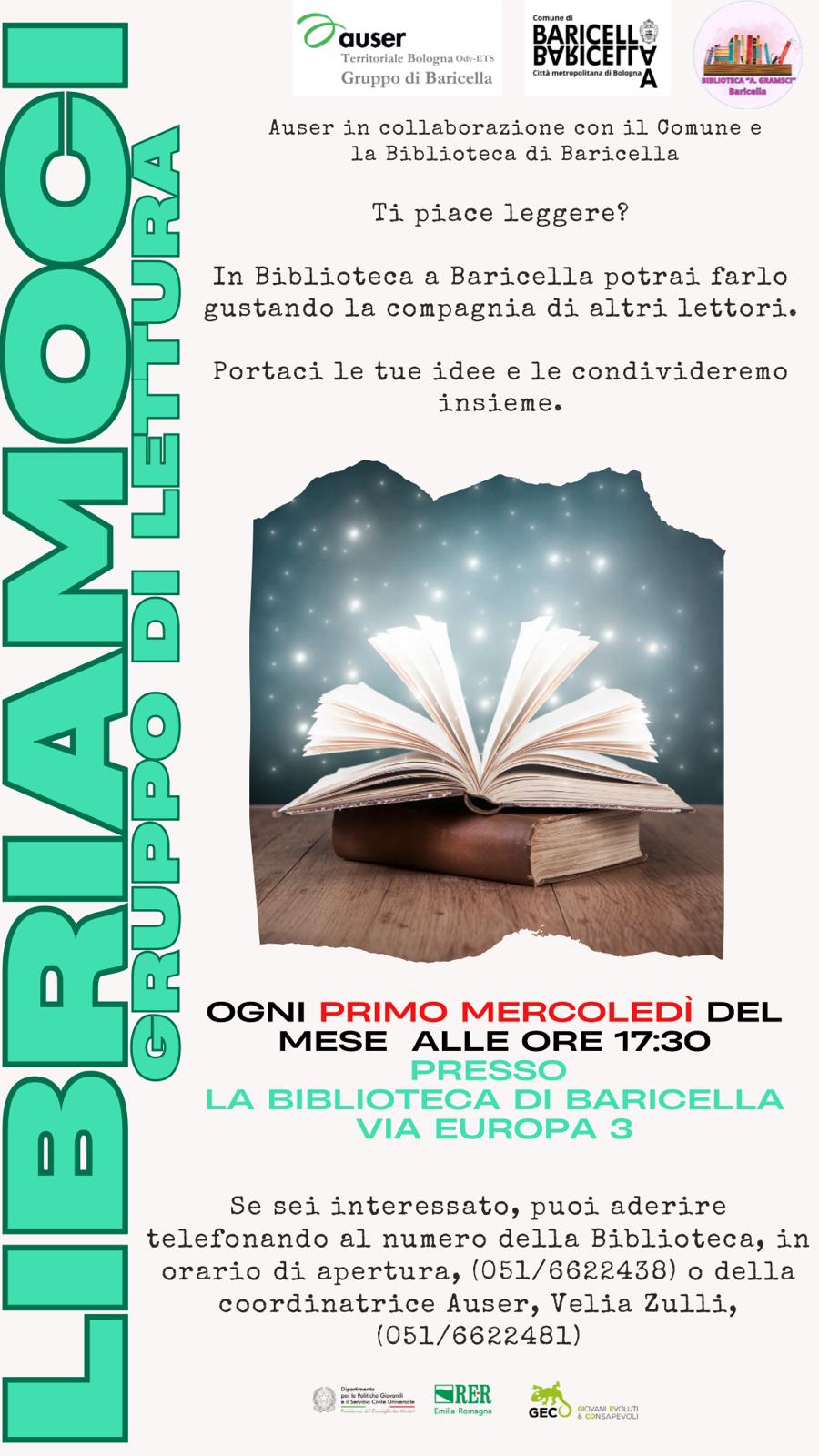 Se sei interessato, puoi aderire telefonando al numero della Biblioteca, in orario di apertura, (051/6622438) o della coordinatrice Auser, Velia Zulli, (051/6622481).