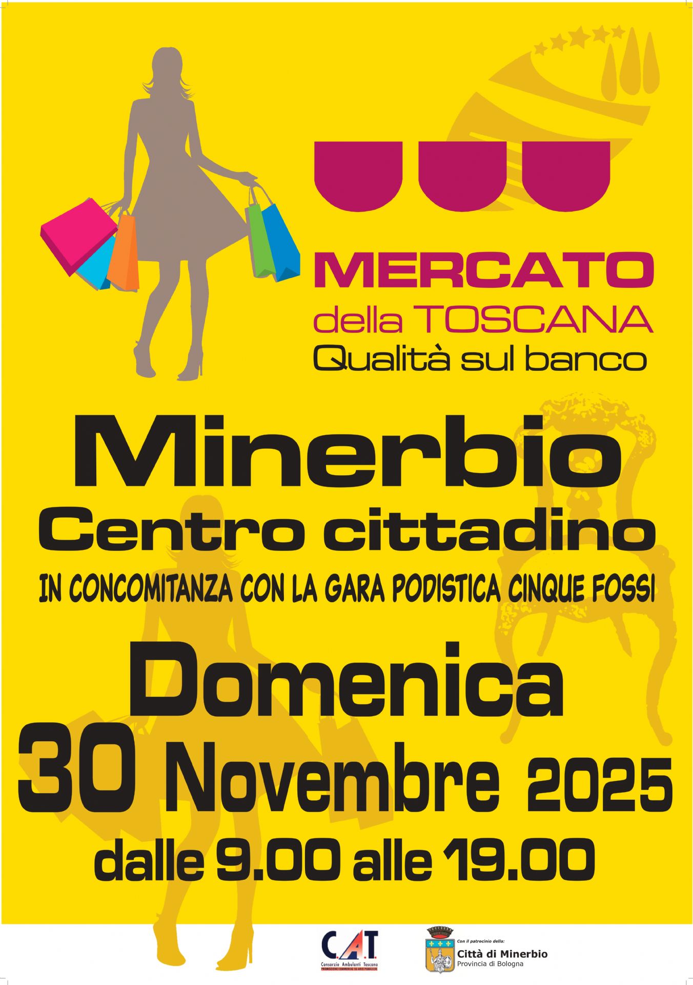 Domenica 30 novembre 2025 dalle ore 9.00 in occasione della 13° edizione della "CINQUE FOSSI -RUN&WALK", Camminata e Gara nazionale, sarà nuovamente presente il Mercato della Toscana, con il patrocinio del Comune di Minerbio, lungo via Garibaldi a Minerbio, che sarà chiusa al traffico.