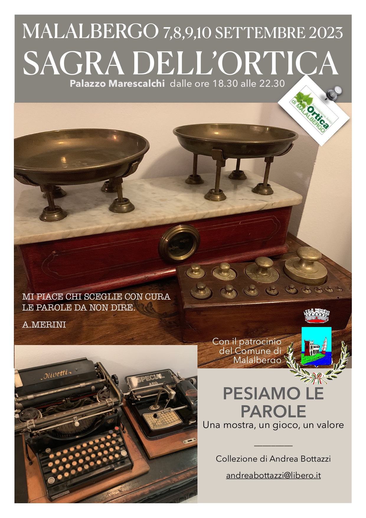 In occasione della Sagra dell'Ortica, presso Palazzo Marescalchi si terrà la mostra di Andrea Bottazzi, visionabile tutte le sere dal 7 Settembre al 10 Settembre.