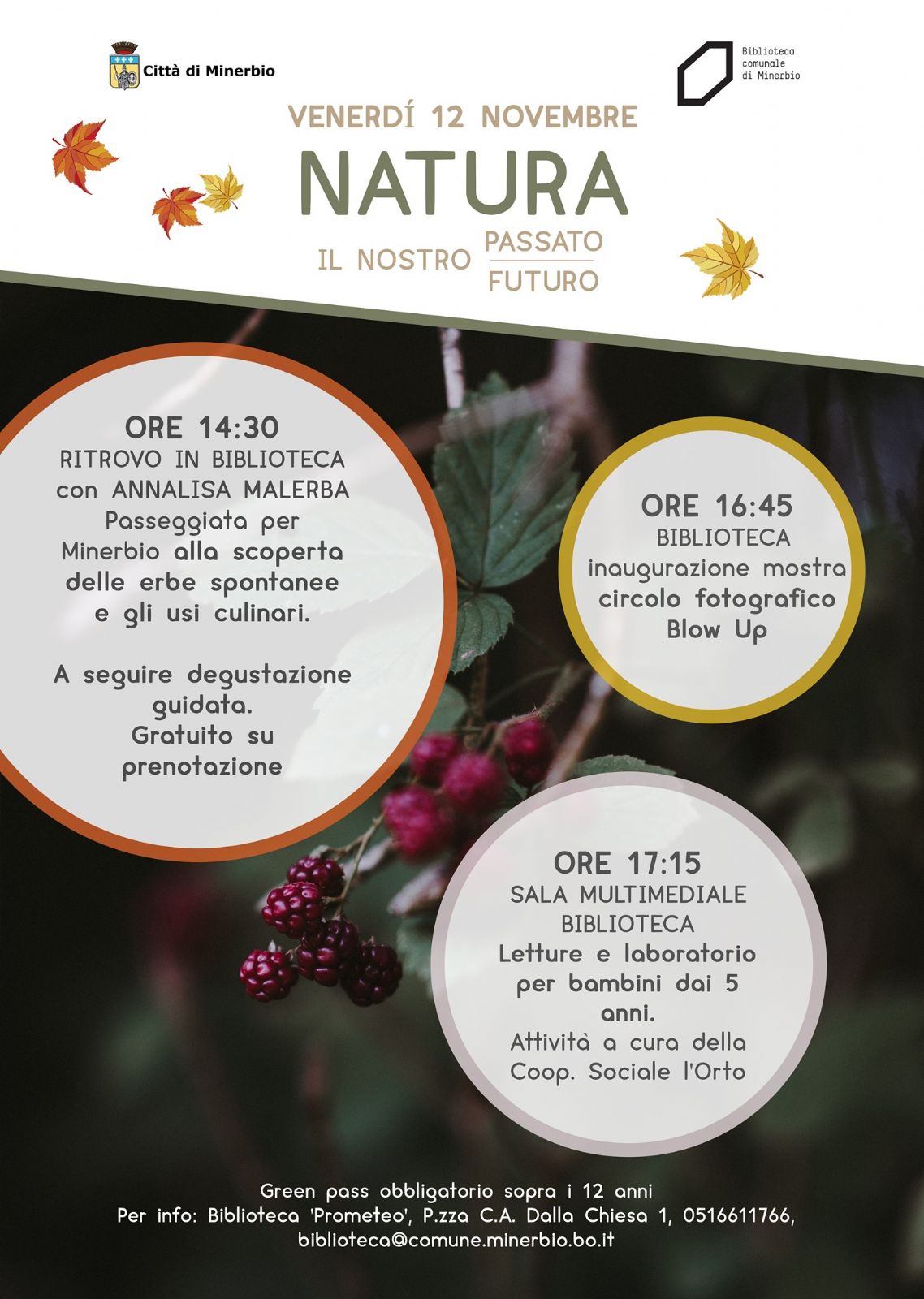 Info e prenotazioni: biblioteca@comune.minerbio.bo.it, 051/6611766