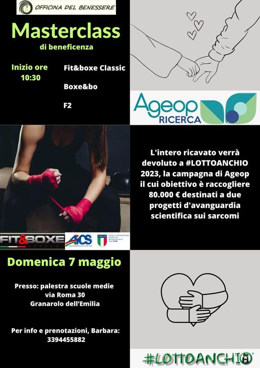 Presso la palestra della scuola media “Matteucci”, l'Officina del Benessere il 7 maggio organizza un evento Masterclass il cui incasso andrà totalmente in beneficenza, a favore dell' AGEOP.