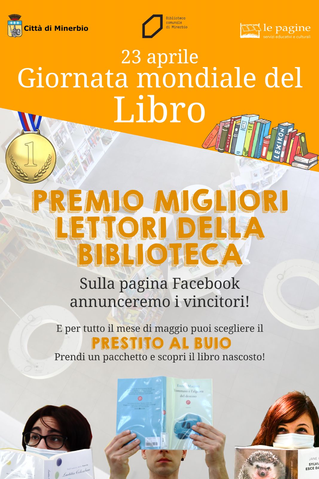 In occasione del Giornata mondiale del Libro e del diritto d'autore 2021, per tutto il mese di Maggio presso la Biblioteca sarà possibile partecipare al "prestito al buio", con cui gli utenti porteranno a casa un libro a sorpresa.