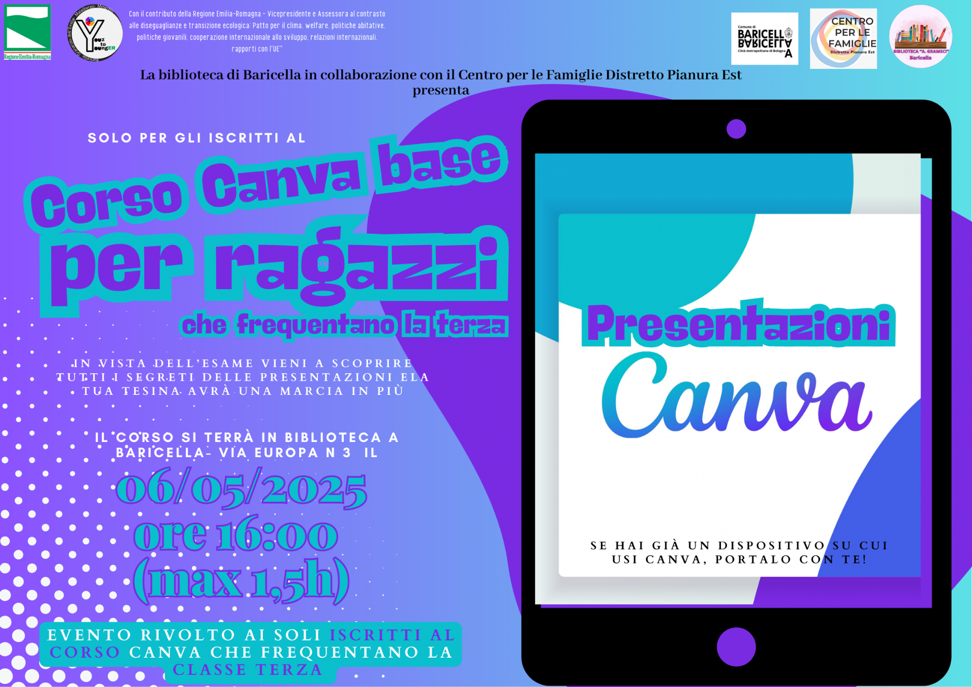 Scopri Canva: un corso per ragazzi (+11) in biblioteca a Baricella!