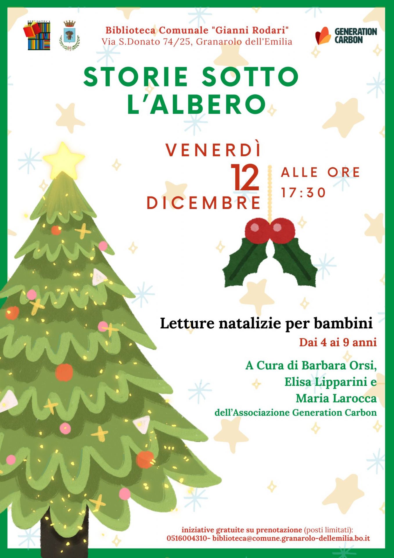 Venerdì 12 dicembre, alle 17.30, la Biblioteca Comunale “Gianni Rodari” di Granarolo dell’Emilia ospita un pomeriggio speciale dedicato ai più piccoli con “Storie sotto l’albero”, l’appuntamento di letture natalizie pensato per bambine e bambini dai 4 ai 9 anni.