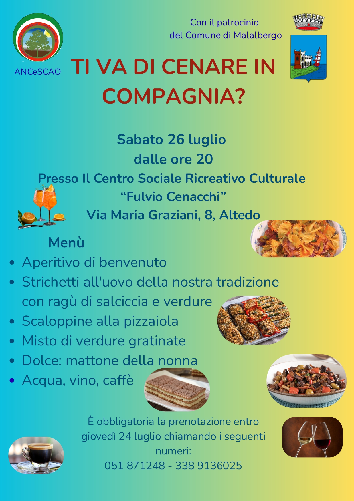 Cena presso il centro Sociale Ricreativo Culturale "Fulvio Cenacchi"