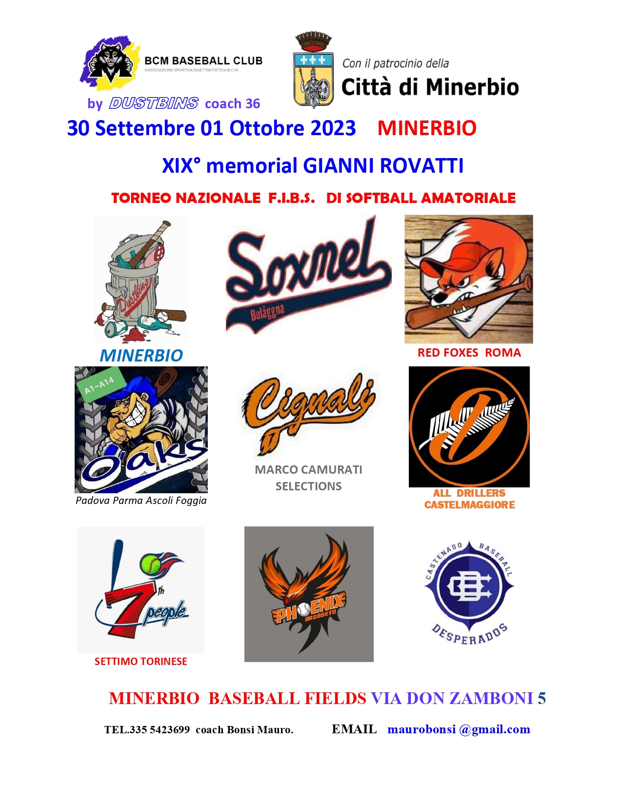 Sabato 30 settembre e domenica 1 ottobre 2023 BCM Baseball Club organizza il 19° MEMORIAL GIANNI ROVATTI presso Campo da Baseball di Minerbio (Via Don Zamboni, 5), torneo nazionale F.I.B.S. di Softball amatoriale.