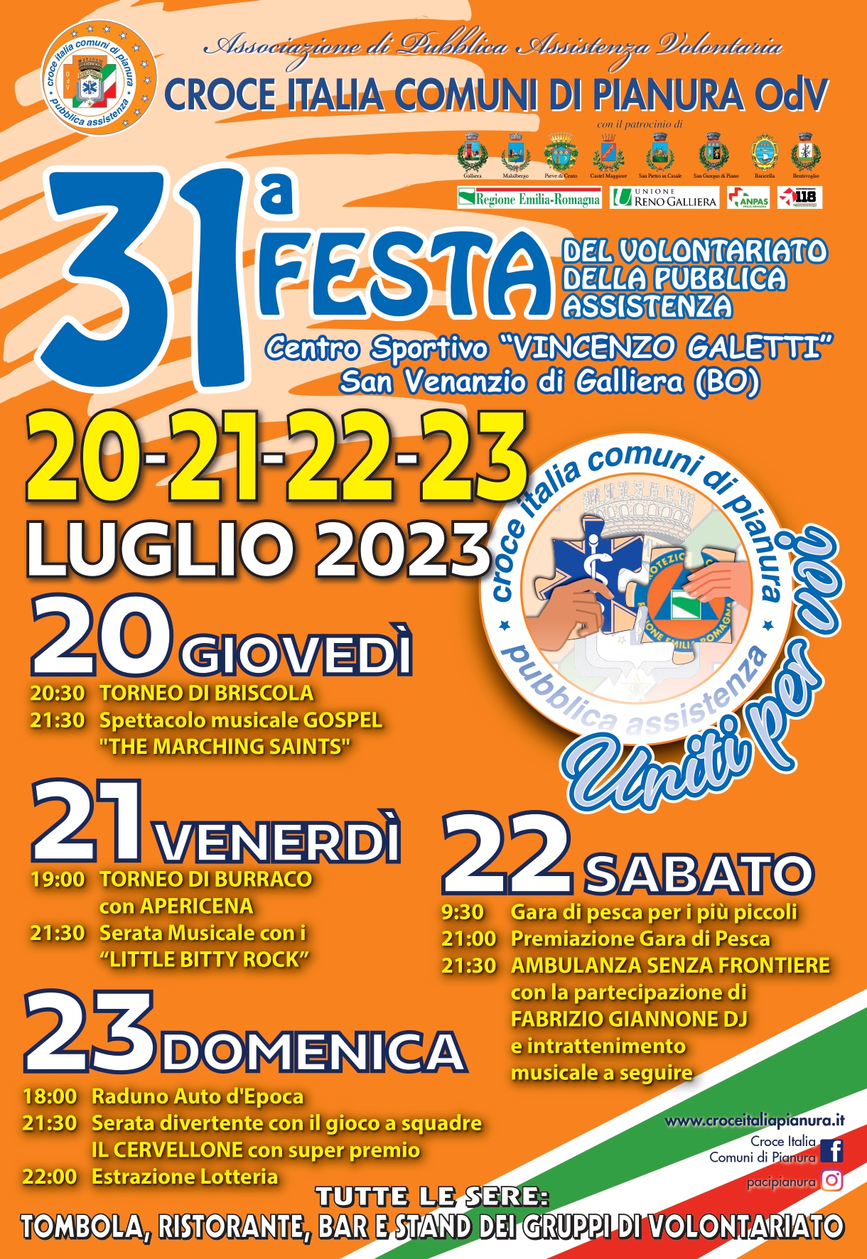 Dal 20 al 23 Luglio presso il Centro sportivo "Vincenzo Galetti" di San Venanzio di Galliera ci sarà la 31° festa del volontariato con attività come specificate nel volantino in allegato.